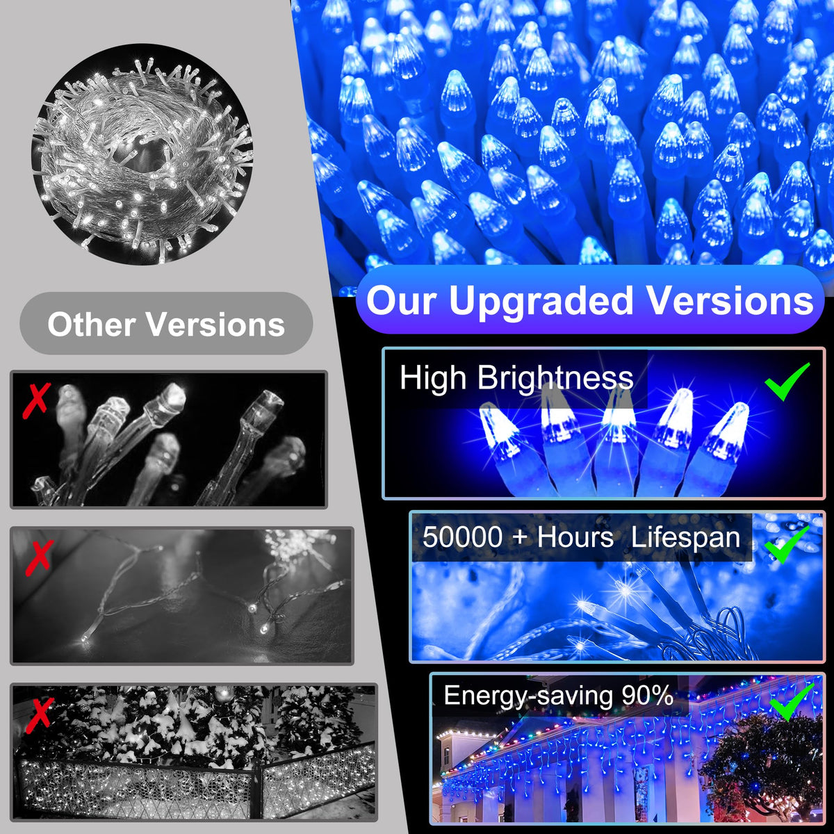 Q: How long are the XIKENGSHQ LED Christmas lights?A: The XIKENGSHQ LED Christmas lights are 164 feet long and feature 360 drops, providing extensive coverage for your holiday decorations.