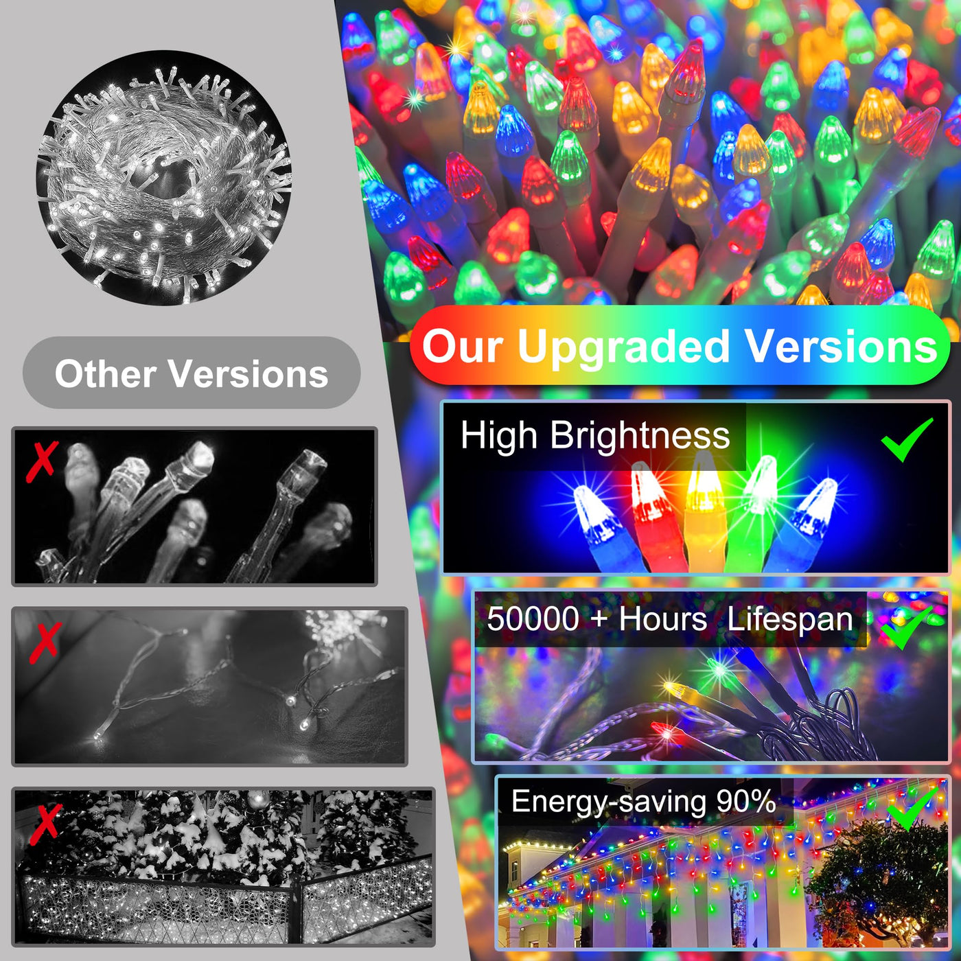 Q: How does the timer function work on these Christmas lights?A: The built-in timer allows you to set a schedule of six hours on and eighteen hours off. Once set, the lights will automatically turn on and off according to this schedule, enhancing convenience for holiday decorating.