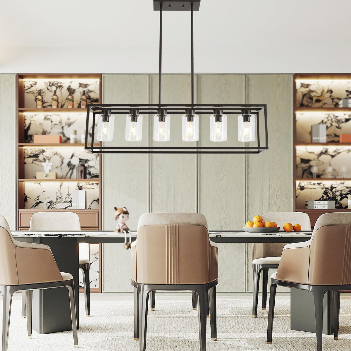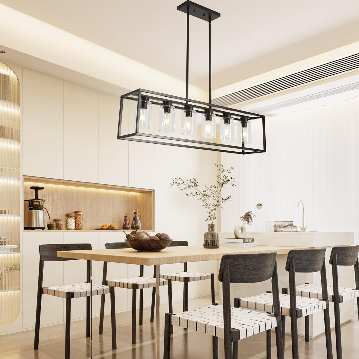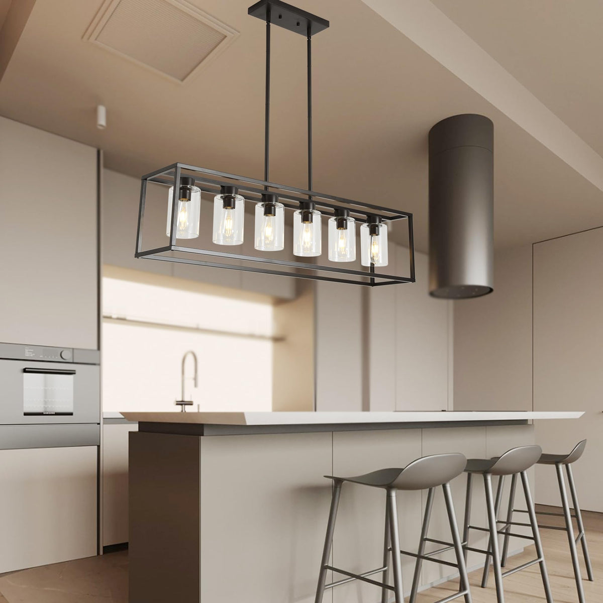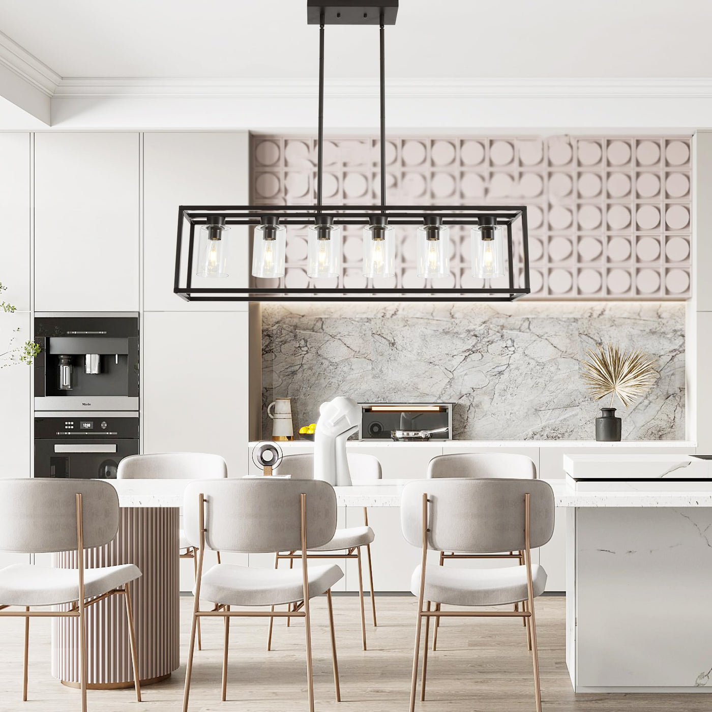 Q: What is the size of the chandelier?A: The chandelier features a 6-light design with dimensions of approximately 40.98 inches in length and 10.0 inches in width, making it an ideal choice for kitchen islands or dining rooms.