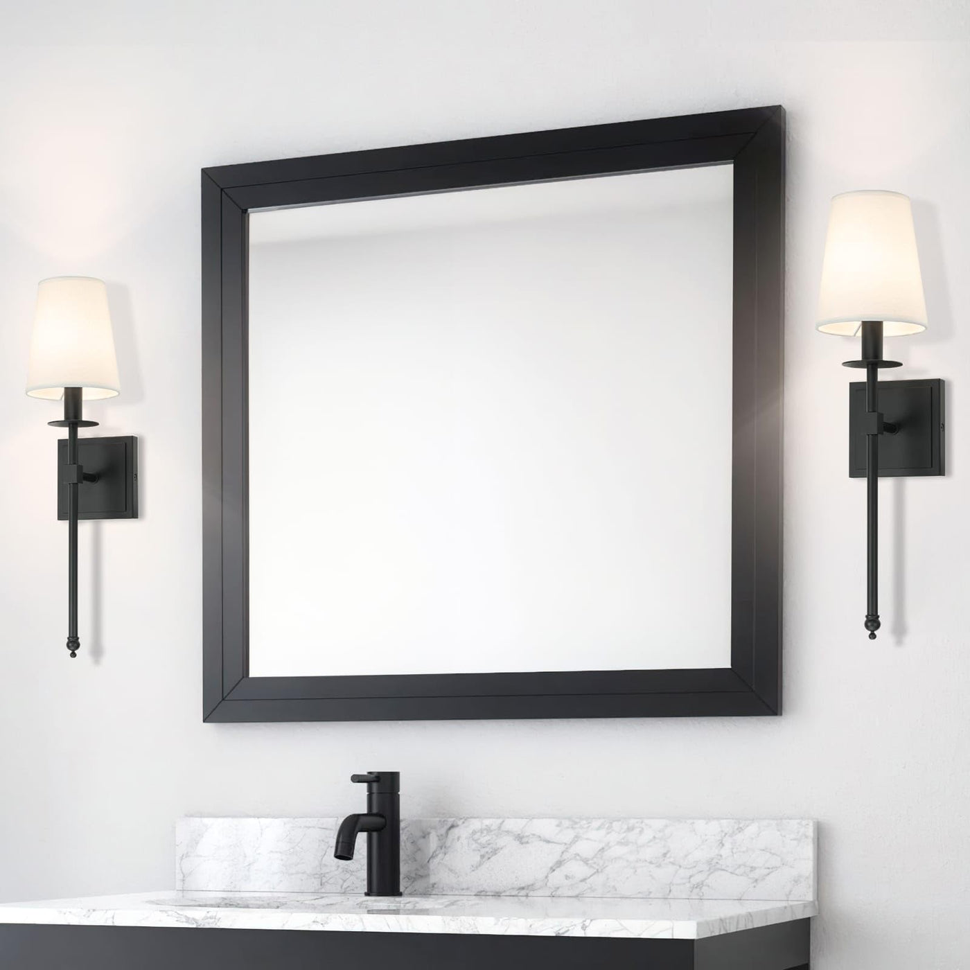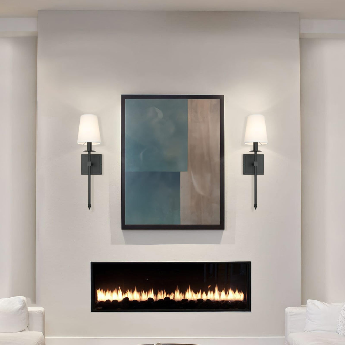 Xinbei Lighting Black Wall Sconces Set Of 2, Classic Sconces Wall Lighting With Flared White Fabric Shade 1 Light Wall Lamps For