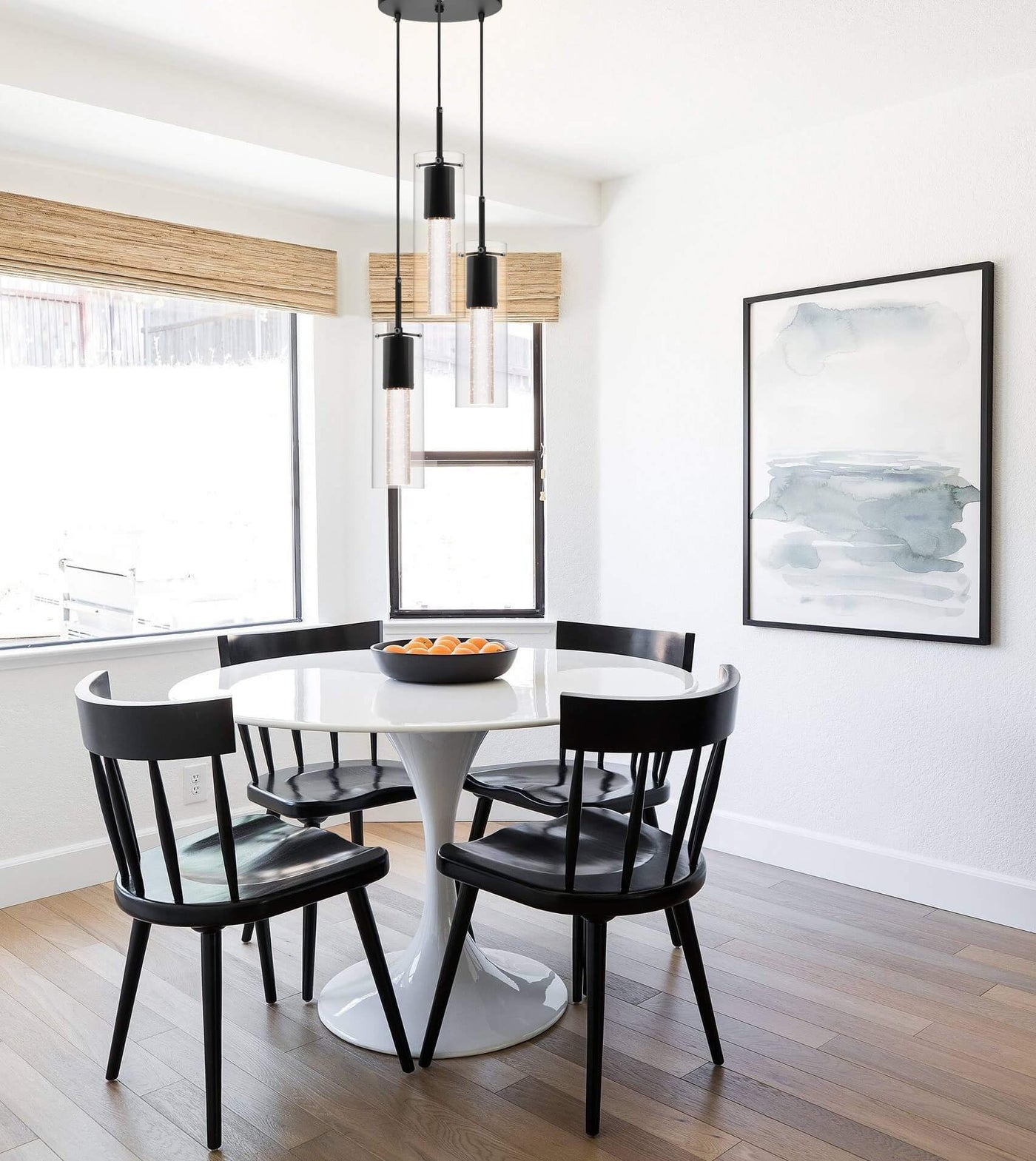 Xinbei Lighting Pendant Light, Modern 3 Light Cluster Kitchen Island Pendant Lighting With Led Bulb & Bubble Crystal, Matte Blac