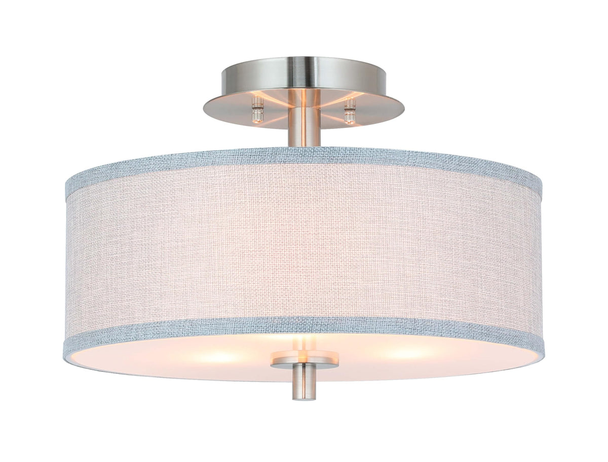 Xinbei Lighting Semi Flush Mount Ceiling Light, 3 Light Drum Light Fixture With Linen Fabric Shade Brushed Nickel For Living Roo