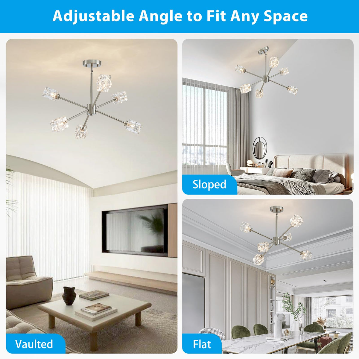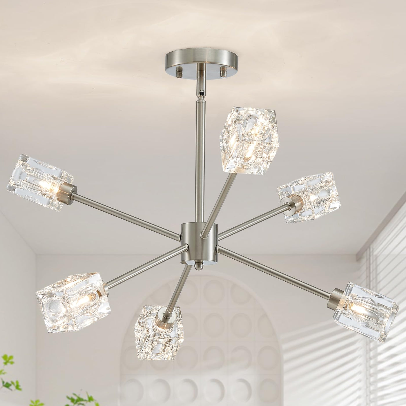Xingqi 6-Light Semi Flush Mount Ceiling Light Fixture Modern Brushed Nickel Sputnik Chandelier 25.2'' Ceiling Lighting For Bedro