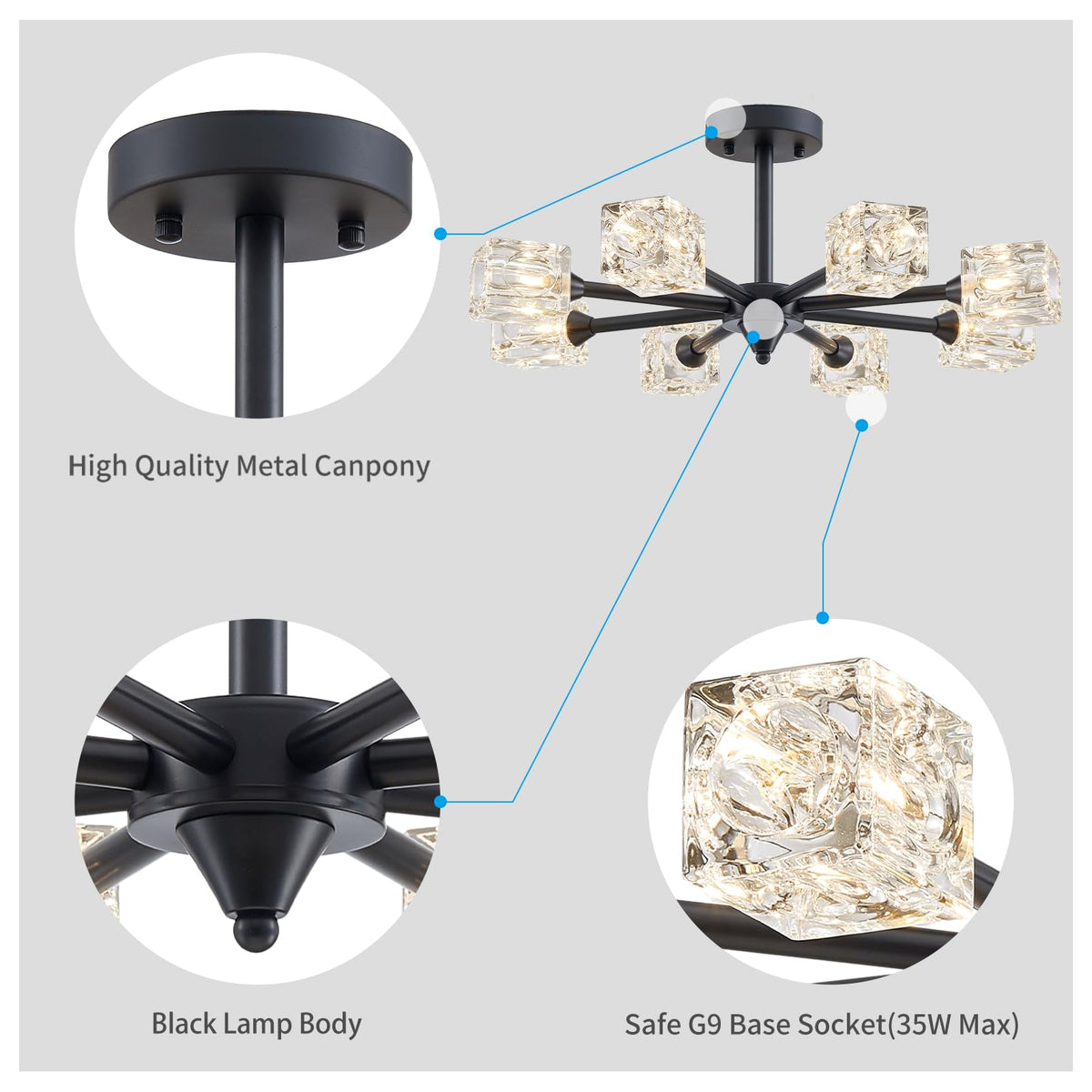 Enhance Your Living Space With The Xingqi 8-Lights Semi Flush Mount Ceiling Light Fixture. This Modern Chandelier Lighting Fixture Is Designed To Add A Touch Of Elegance And Style To Any Room. Whether It'S Your Dining Room, Living Room, Kitchen, Bedroom, Or Entryway, This Sputnik-Inspired Chandelier Will Create A Striking Focal Point. Easy To Install, This Semi Flush Mount Ceiling Light Fixture Is Suitable For Both Low And High Ceilings. The Adjustable Height Allows You To Customize The Look And Fit Perfectly In Your Desired Location. With Its Sturdy Construction And Quality Materials, This Chandelier Ensures Durability And Long-Lasting Performance. Not Only Does This Chandelier Illuminate Your Space Beautifully, But It Also Serves As A Stunning Decorative Piece. Its Versatile Design Complements Various Interior Styles, From Modern To Transitional And Beyond.