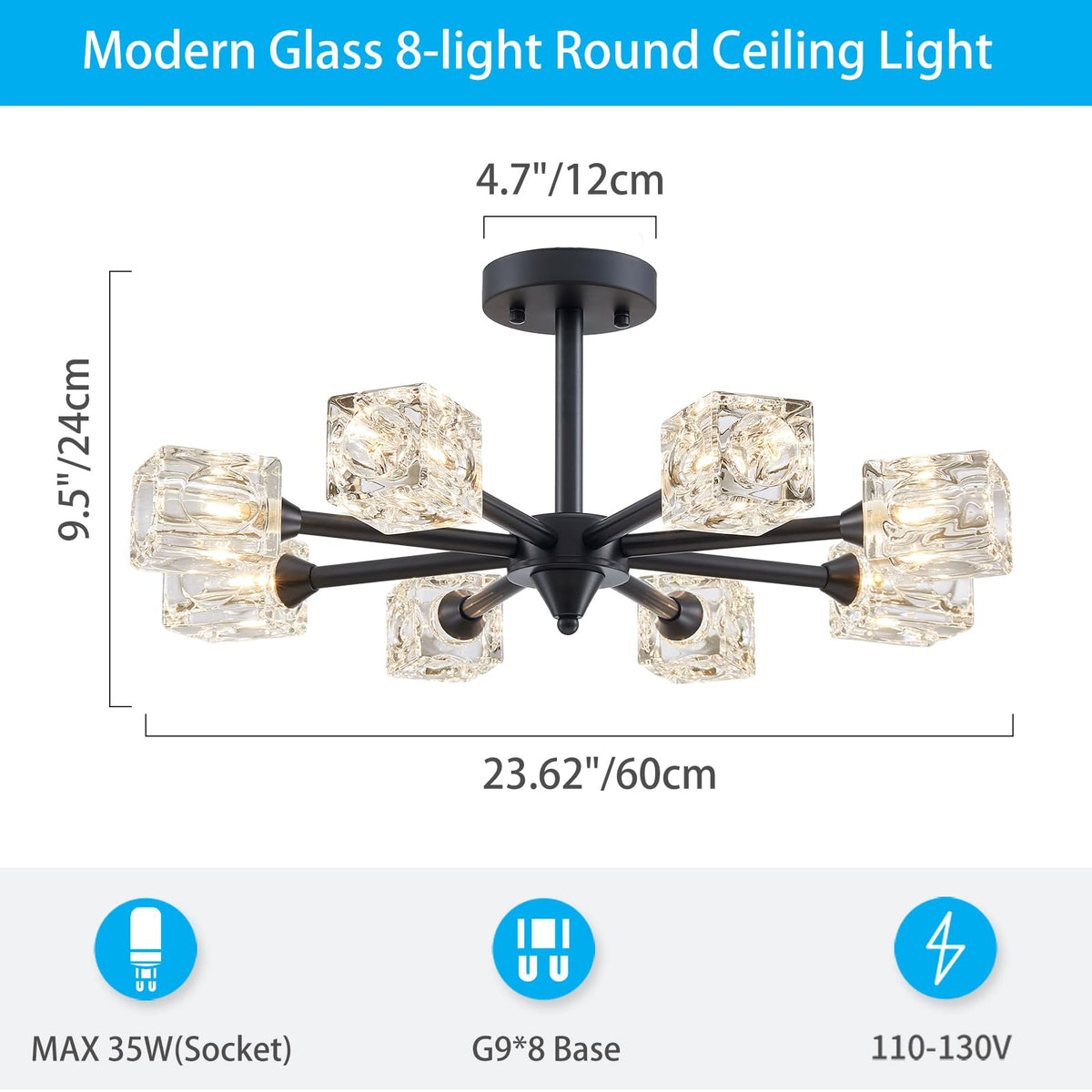 Xingqi Black Sputnik Chandelier Ceiling Light Fixture 8 Lights Farmhouse Semi Flush Mount Ceiling Light Industrial Glass Lightin