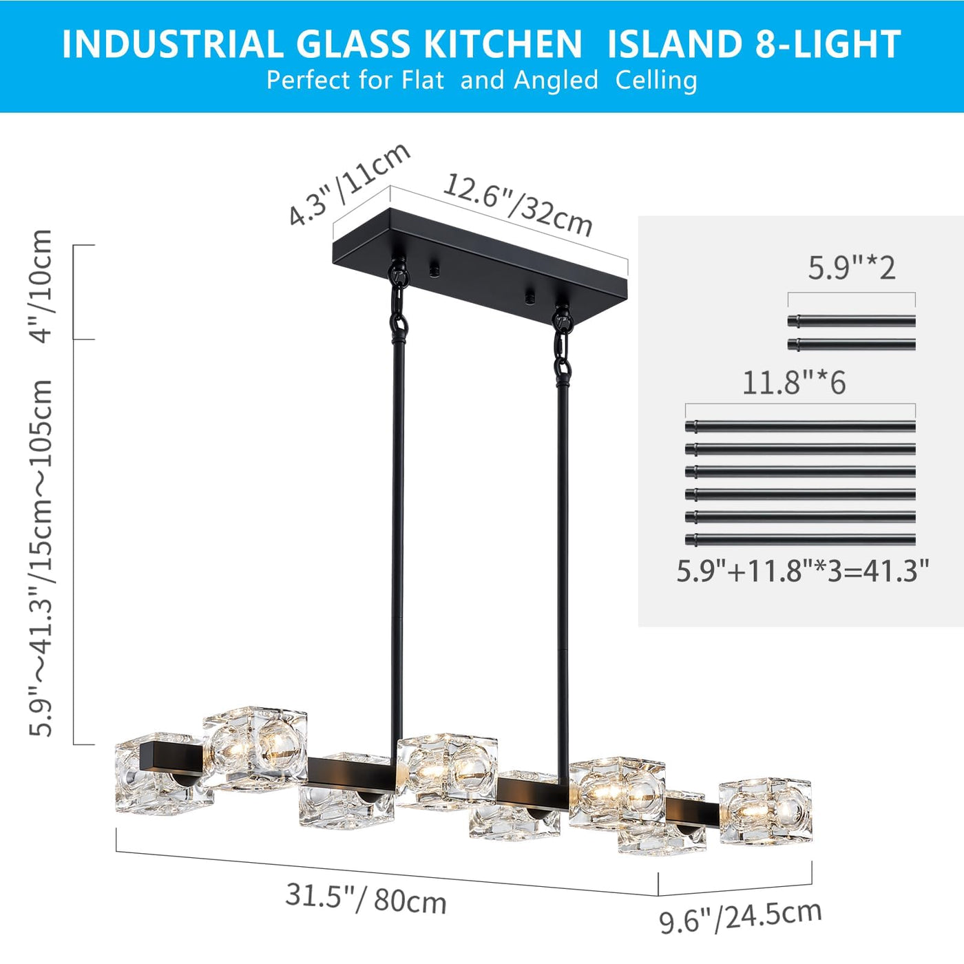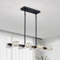 Xingqi Chandeliers For Dining Room 8-Lights Over Table, Kitchen Island Light Fixture Modern Black Chandelier With Glass Lampshad