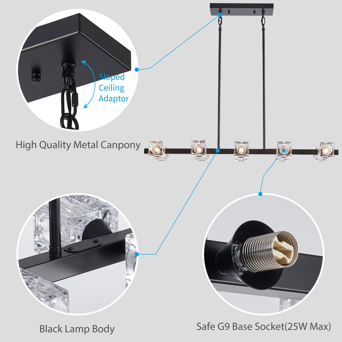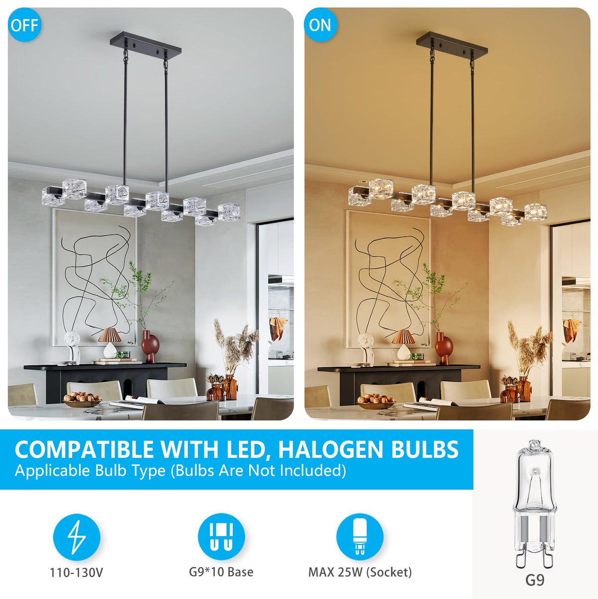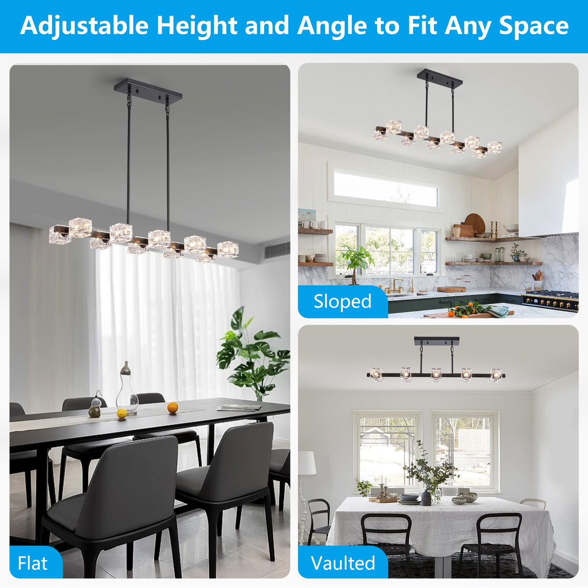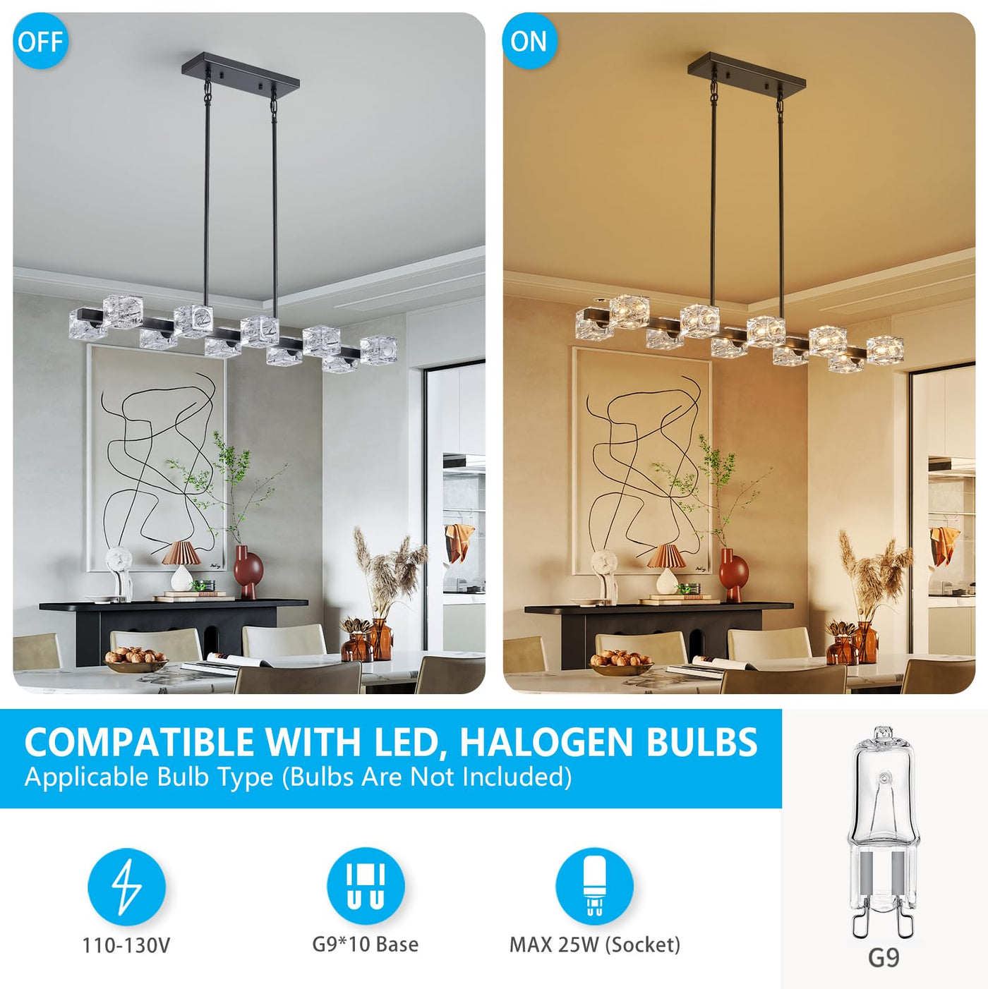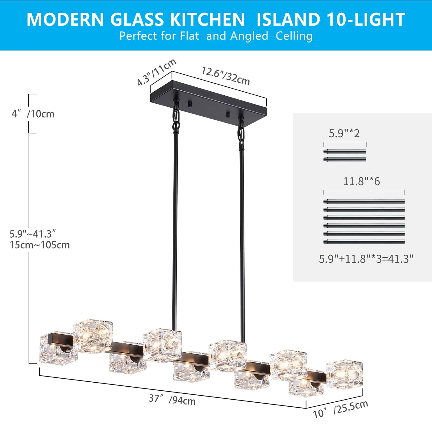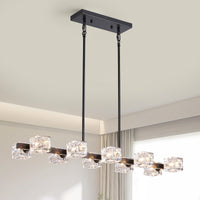 Xingqi Kitchen Island Light Fixture Black Large Rectangular Chandeliers 10 Lights For Dining Room, Modern Chandelier With Glass