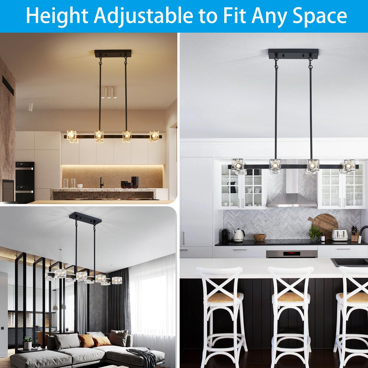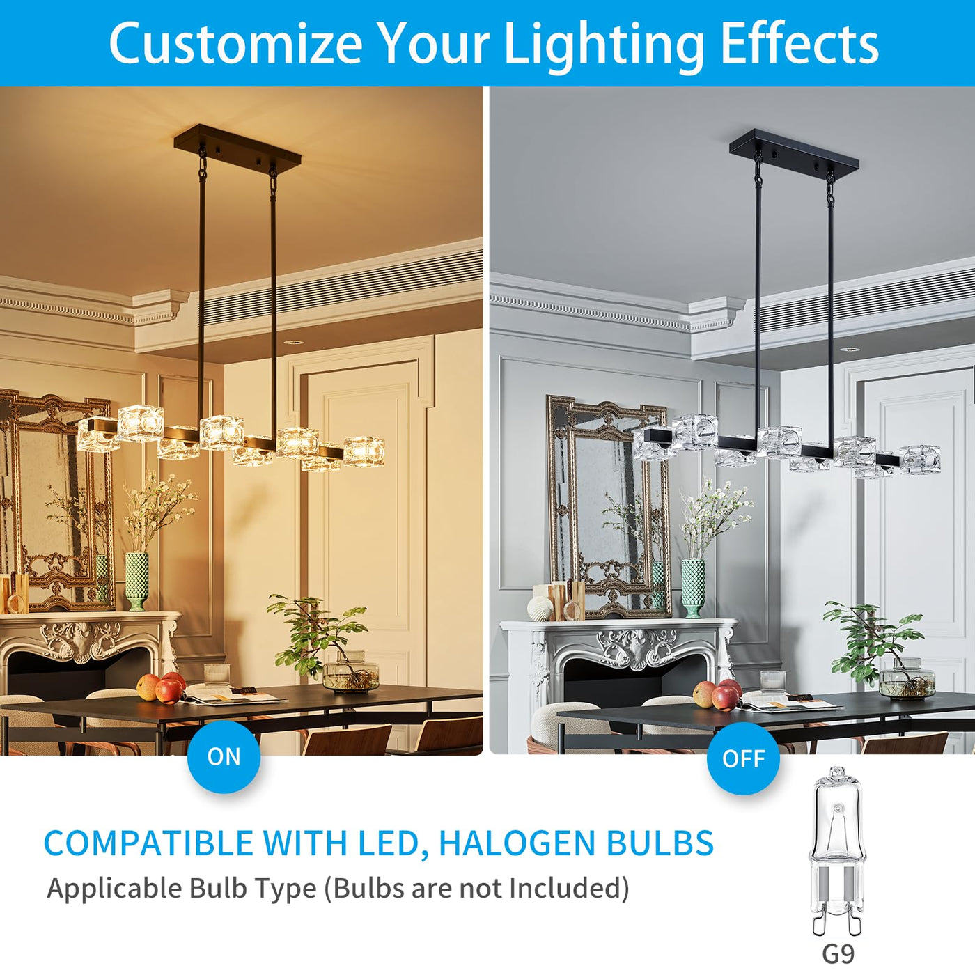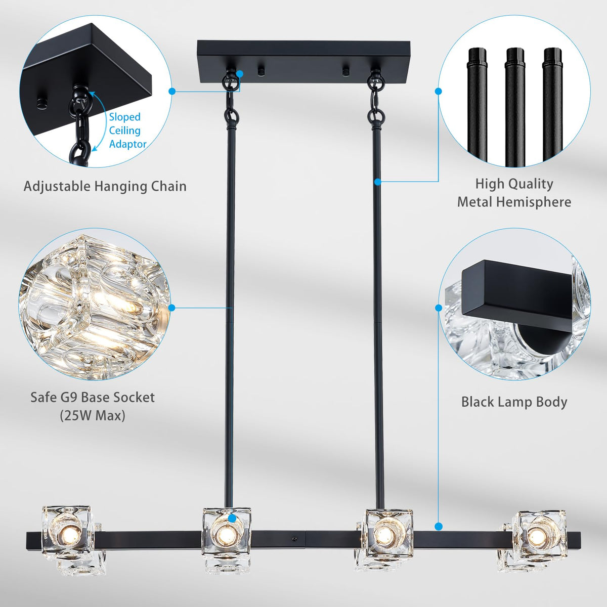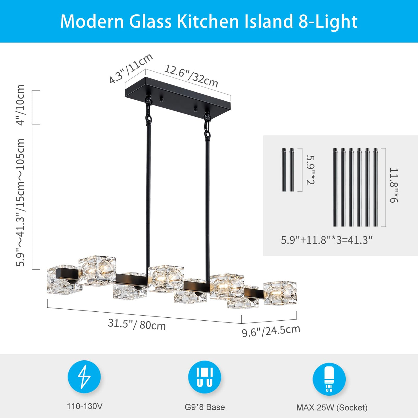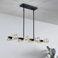 Xingqi Modern Glass Chandeliers For Dining Room Rectangular Black 8-Light Linear Pendant For Lighting Kitchen Island Living Room