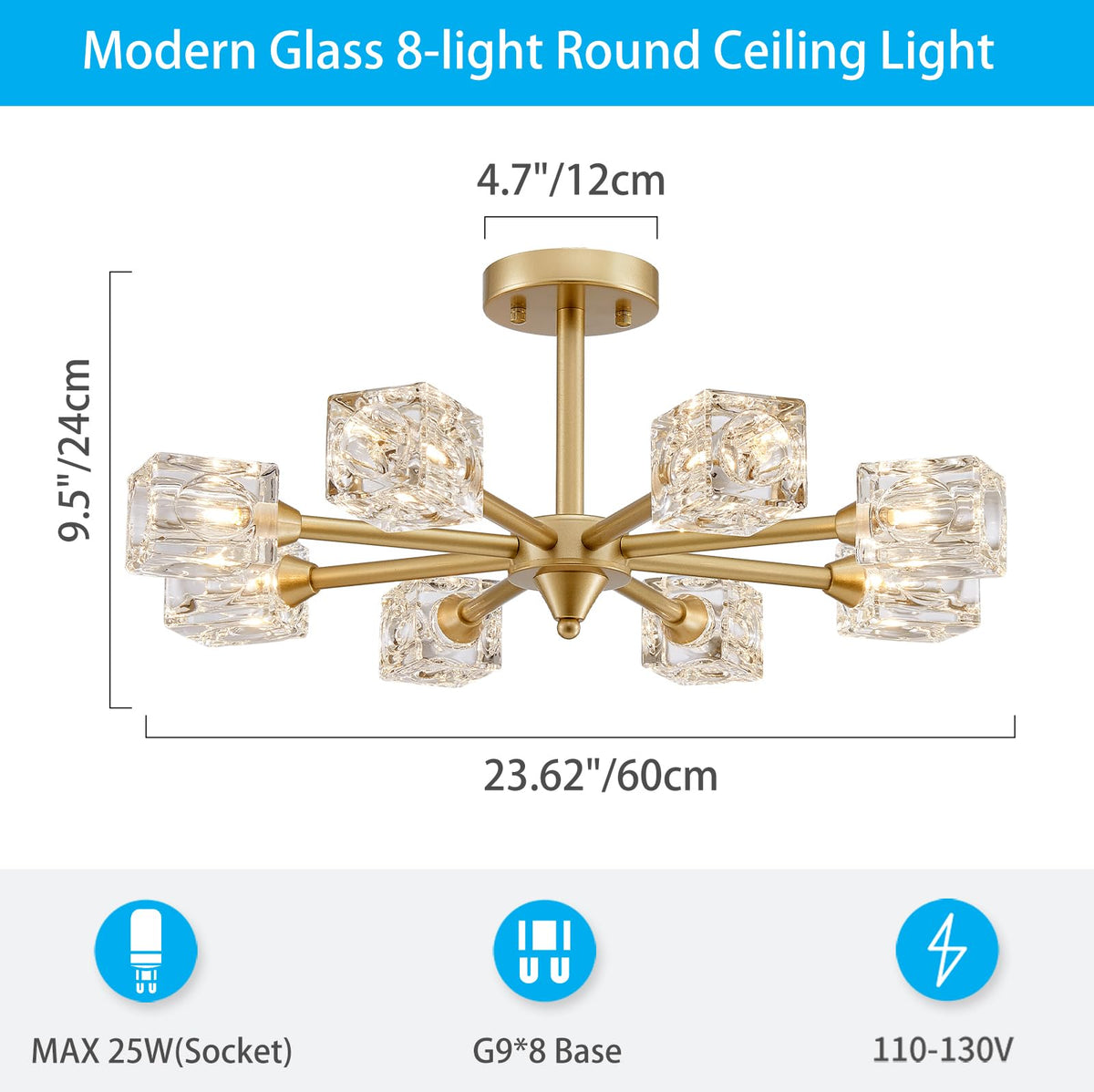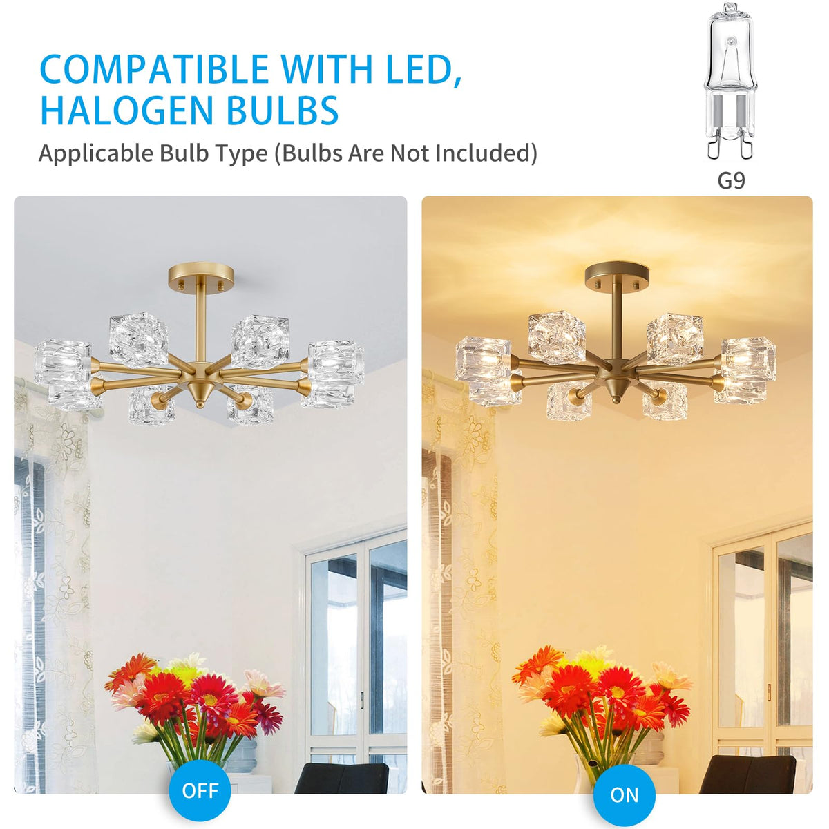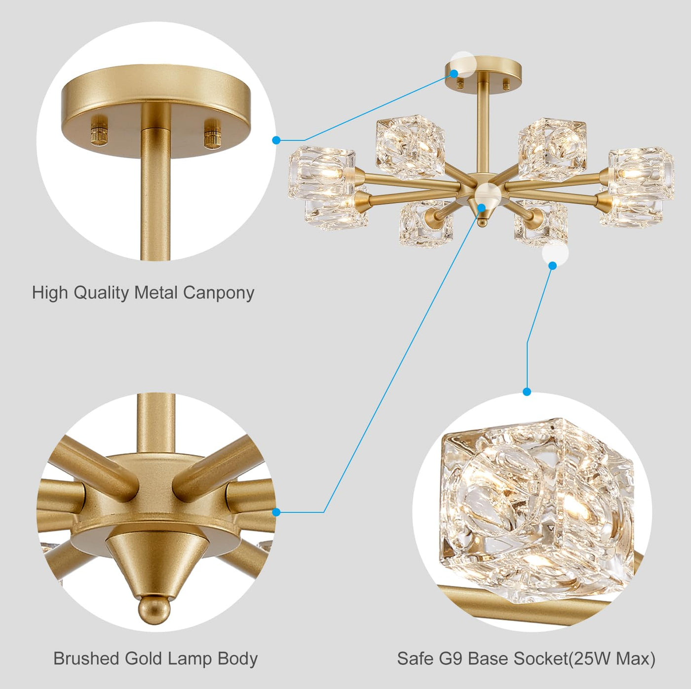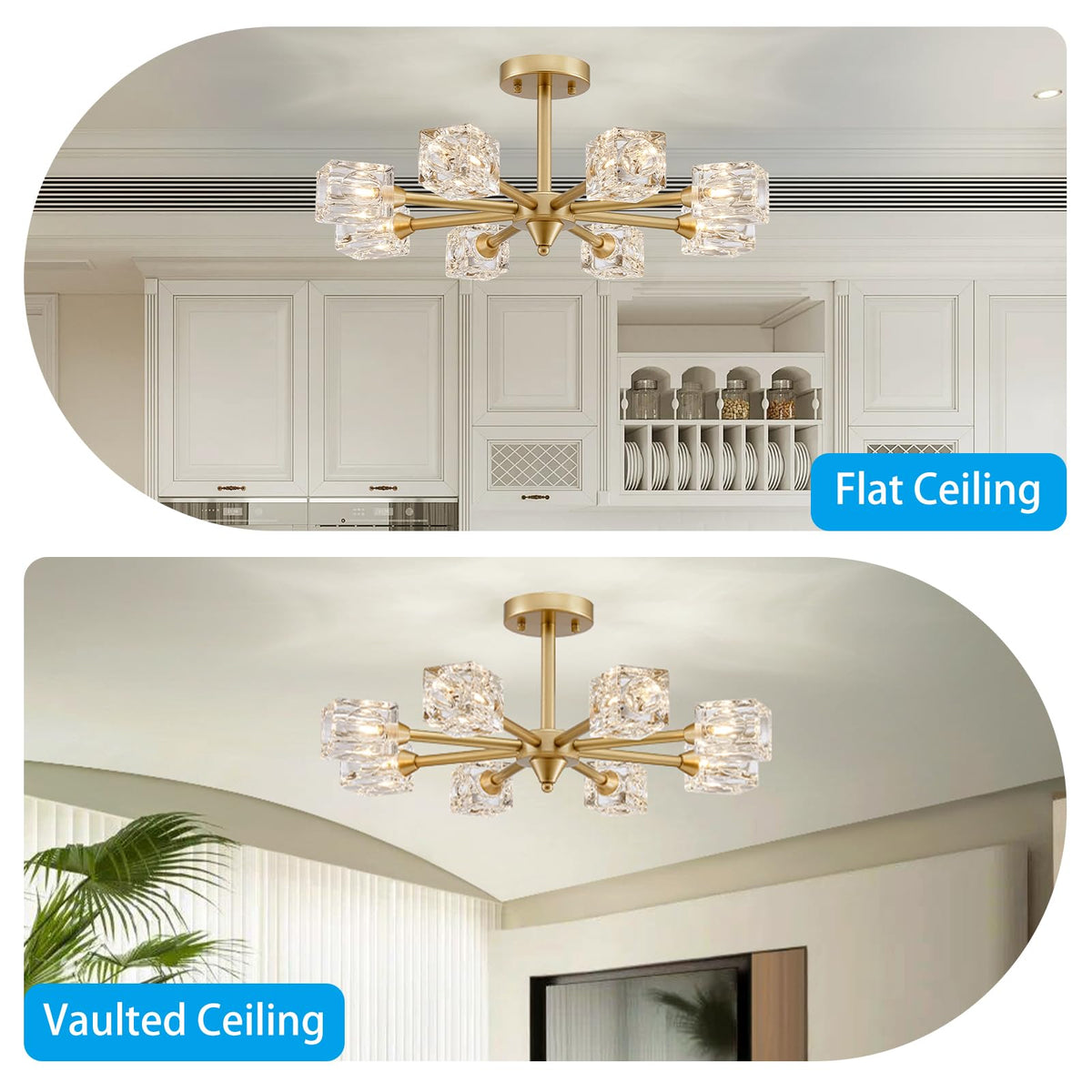 Touch. Ideal For Dining Rooms, Living Rooms, Kitchens, Bedrooms, Or Entryways, This Chandelier Inspired By Sputnik Designs Creates A Captivating Focal Point. It Effortlessly Suits Both Low And High Ceilings, Thanks To Its Easy Installation. Crafted With Robust Materials, This Chandelier Guarantees Durability And Long-Lasting Performance. Besides Illuminating Your Space Beautifully, It Serves As A Remarkable Decorative Element. Its Versatile Design Seamlessly Complements Various Interior Styles, Ranging From Modern To Transitional And More. Elevate Your Living Space With The Xingqi 8-Lights Semi Flush Mount Ceiling Light Fixture.