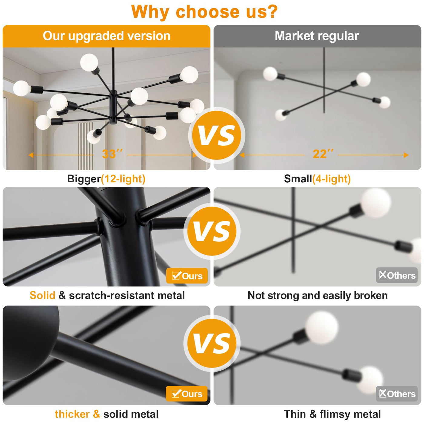 Discover our stunning range of chandeliers that cater to all your lighting needs. Our sputnik light fixture stands out with its modern design, making it a perfect addition to any room. Whether youre looking for an elegant dining room chandelier for your living area or a stylish dining room light fixture, our collection has you covered. For those who appreciate a bold statement, our black chandelier light fixture provides a sleek, sophisticated touch. This modern chandelier is ideal for a variety of spaces, including the dining room and living room. Specifically designed for versatility, it seamlessly blends with bedroom chandelier to brighten up your culinary space. Our selection includes various styles, from the classic mid-century modern chandelier to the contemporary modern black chandelier. For a touch of innovation, explore our sputnik chandelier options, including the modern sputnik chandelier and sputnik ceiling light fixture, which add a unique flair to your home decor. We also offer functional designs such as the ceiling chandelier, perfect for any room, and slanted ceiling light fixture for those tricky angles. Whether you need kitchen chandeliers or a chic bedroom chandelier ceiling light, our range ensures that you find the ideal lighting solution. For a touch of playfulness, our kids chandelier provides a charming addition to childrens rooms. And if youre looking for more illumination, consider our 12 light chandelier, offering ample light for larger spaces. Enhance your homes aesthetic with our diverse selection of chandeliers, including the elegant black modern chandelier and versatile sputnik light fixture. Each piece is crafted to elevate your interior with style and sophistication.