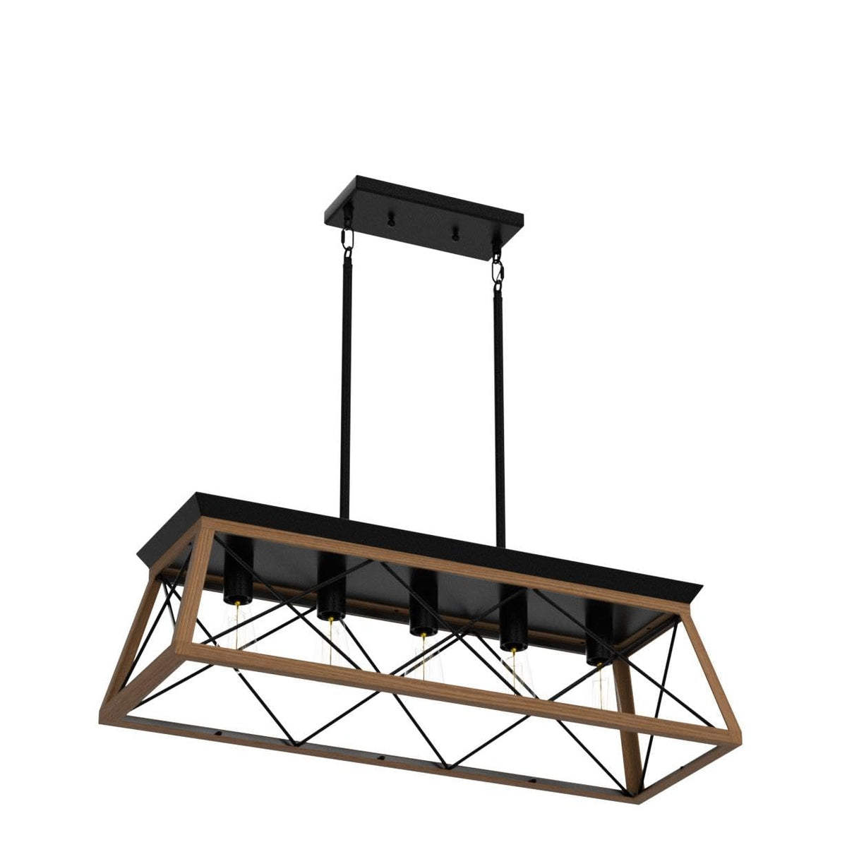 Xipuda 5-Light Rustic Farmhouse Chandelier For Dining Room, Walnut Metal Pendant Lighting