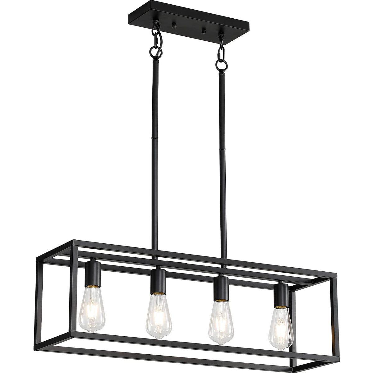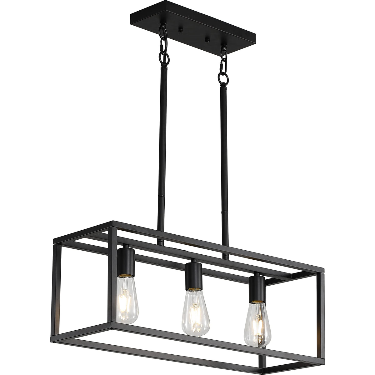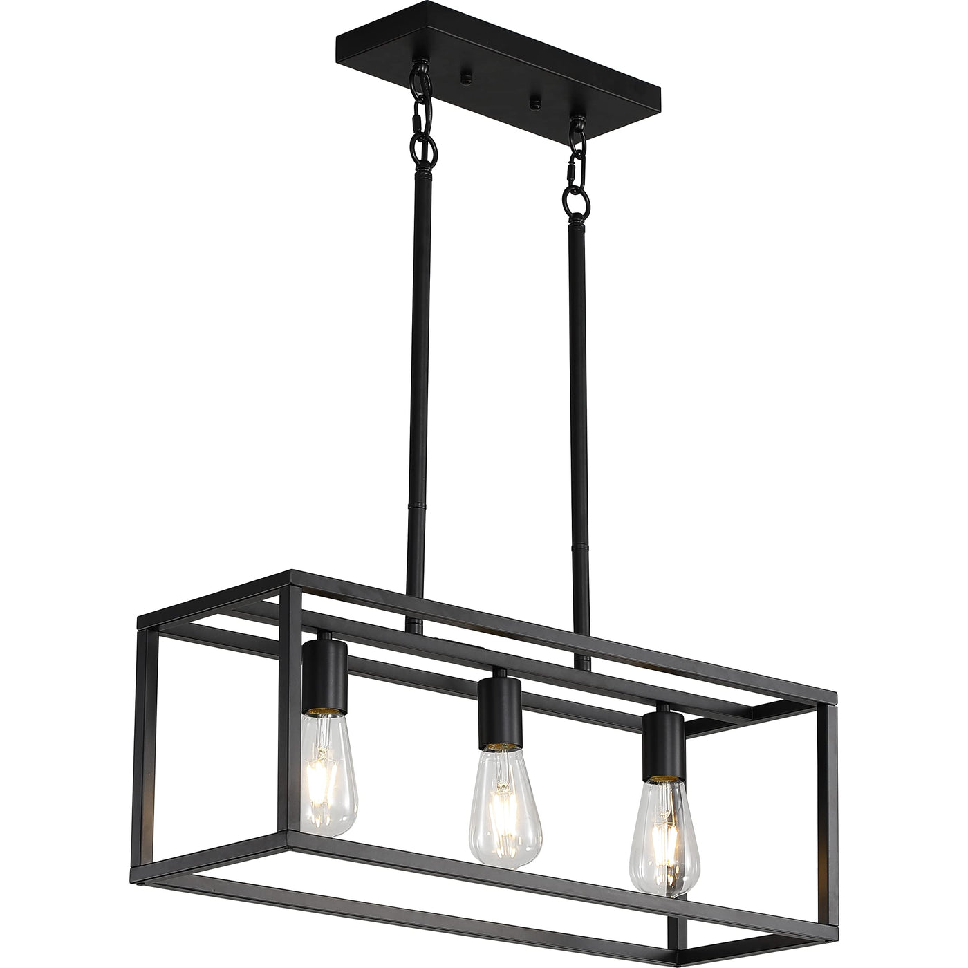 Xislthotsl Black Kitchen Island Lighting, Modern Linear Cage Retangular Chandelier, 3 Lights Industrial Metal Hanging Light Fixture For Farmhouse Kitchen Dining Room Bar Foyer