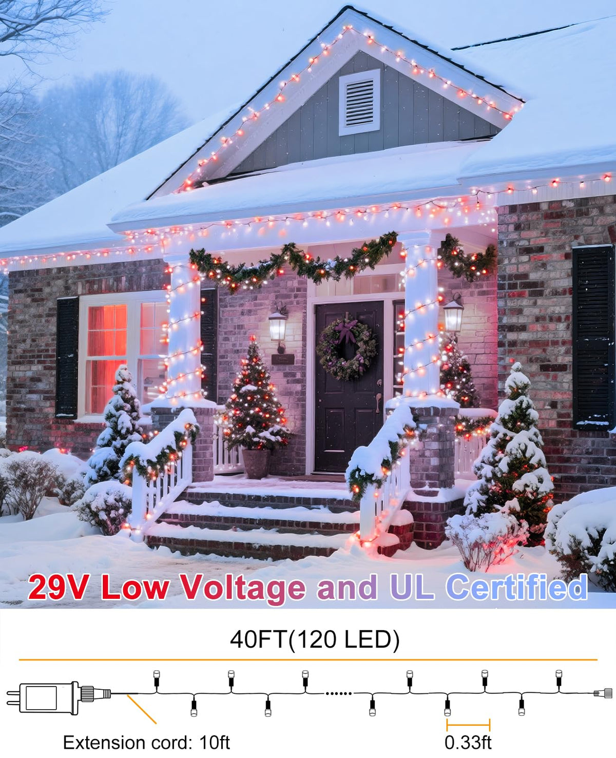 Xmasbokeh 40Ft 120 Led Christmas Lights Outdoor Red White Christmas String Lights Waterproof 8 Modes & Timer Connectable Christmas Tree Lights For Indoor House Patio Xmas Holiday Decorations