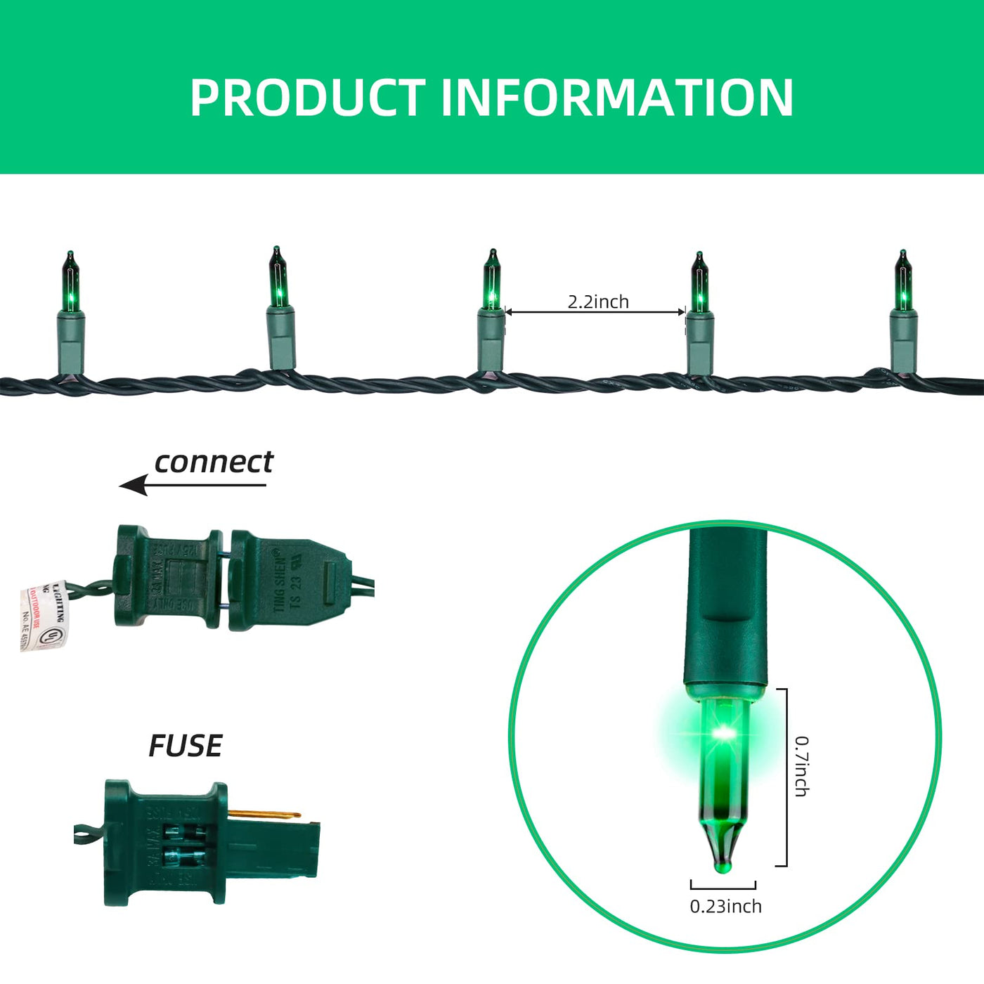 Xmashome 19.6Ft Green Wire Green String Lights, 100 Count Incandescent Christmas Lights (Green, 100 Lights)