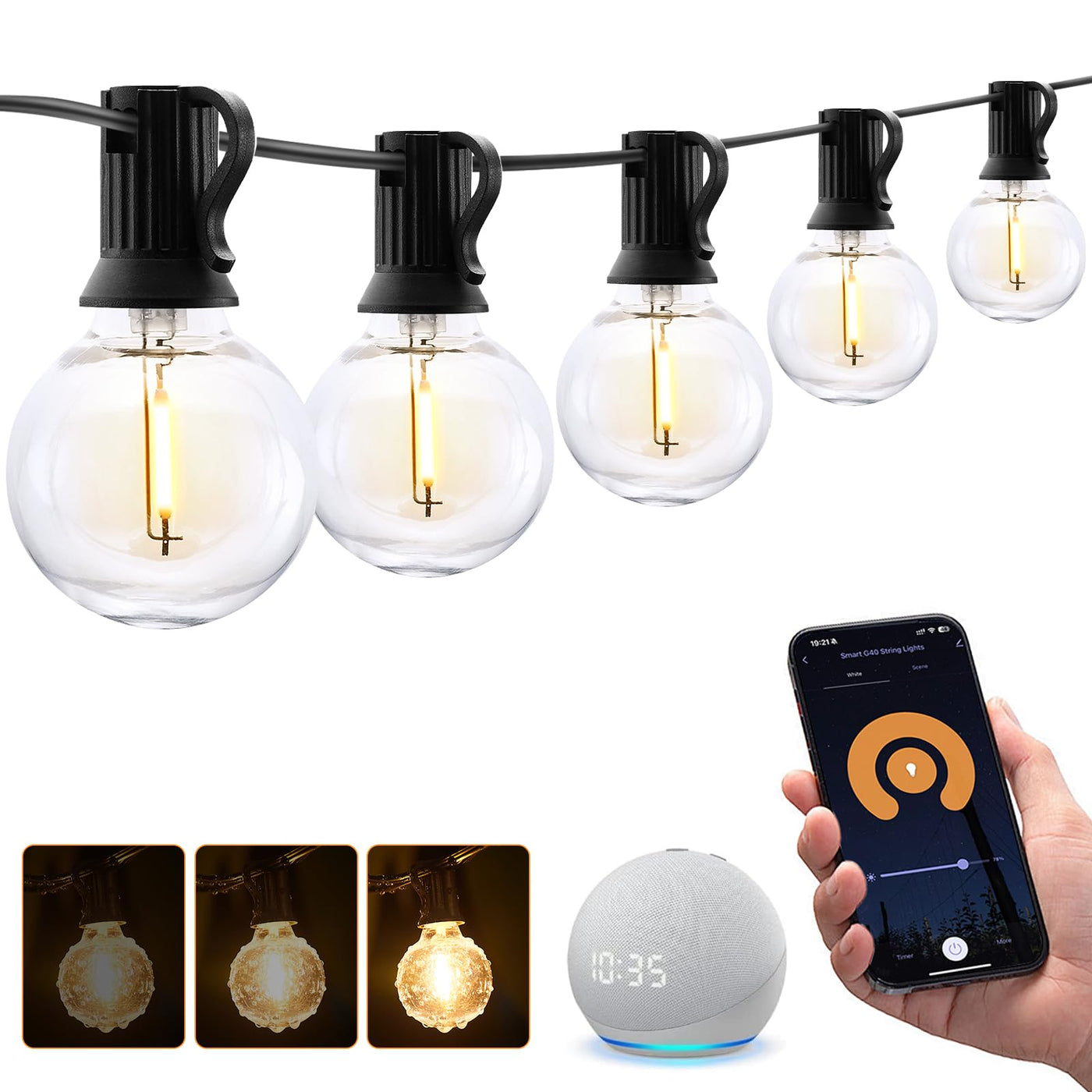 Xmcosy+ Smart Outdoor String Lights, 150Ft G40 Globe Patio Lights With 75 Led Bulbs, Wifi & App Control, Work With Alexa, Extend