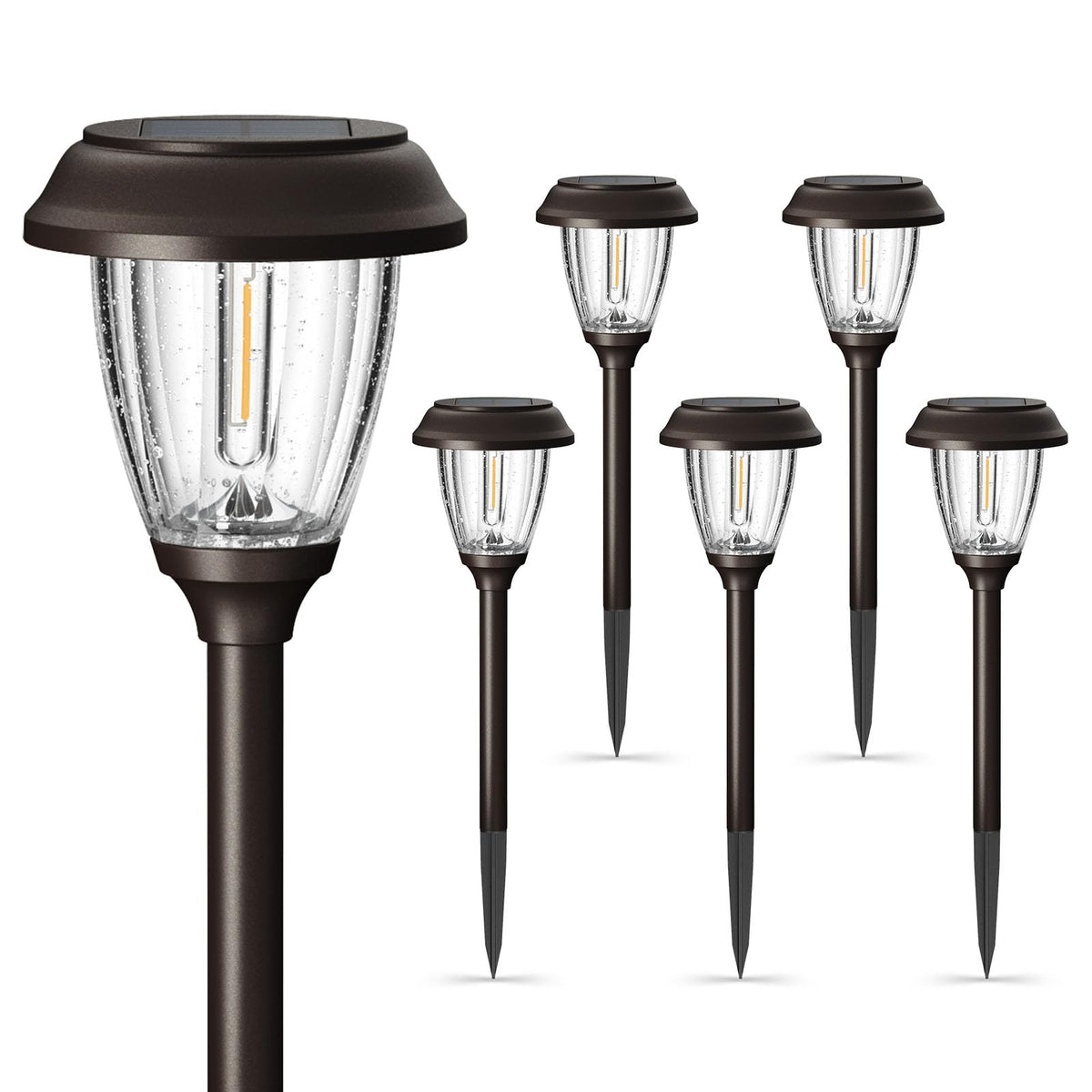 Xmcosy+ 6 Pack Solar Garden Pathway Lights Meets Your Anticipation! With A Special Bubble Glass Lampshade, 10-25 Lumens Adjustable Brightness (High/Low Lighting Mode), High-Efficiency Larger Solar Panel, Xmcosy+ Outdoor Waterproof Solar Path Lights, Perfect For Decorating Your Home'S Garden, Pathway, Patio, Lawn, Driveway, Walkway, Path, Backyard, Balcony, Or Everywhere Outdoor. Package Includes - 6 * Xmcosy+ Bubble Glass Lampshape - 6 * Stainless Steel Connection Tubes - 6 * Abs Reinforced Ground Spikes - 1 * User Manual ??Note A.Please Make Sure The Solar Panel Is Clean And Free Of Dirt And Debris. B.Always Keep The Solar Light Distant From Other Night Light Sources. C.When Inserting The Stake Into The Ground, It Is Best To Irrigate The Ground With Water First To Avoid Damaging The Ground And The Stake.