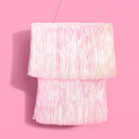 Is it a party in here, or is it just this fun foil fringe chandelier?! This super pretty white iridescent foil chandelier is a super fun party decoration for your next event whether that be a bachelorette party, birthday celebration, baby shower, engagement party, or friends get together! If you're looking to throw a party that your guests won't forget, look no further! This chandelier is sure to create a super exciting atmosphere for the entire party! It's truly the ultimate party decoration!