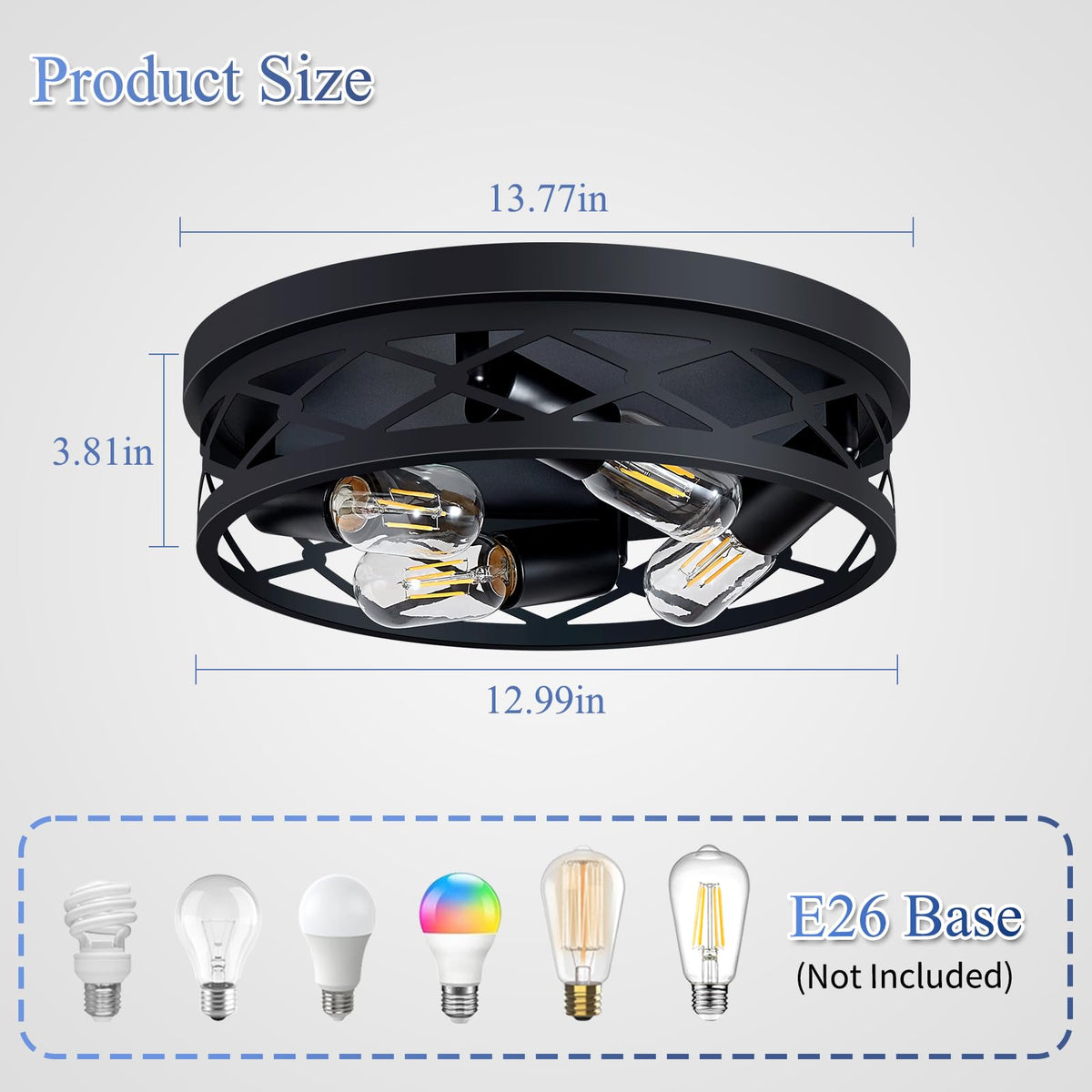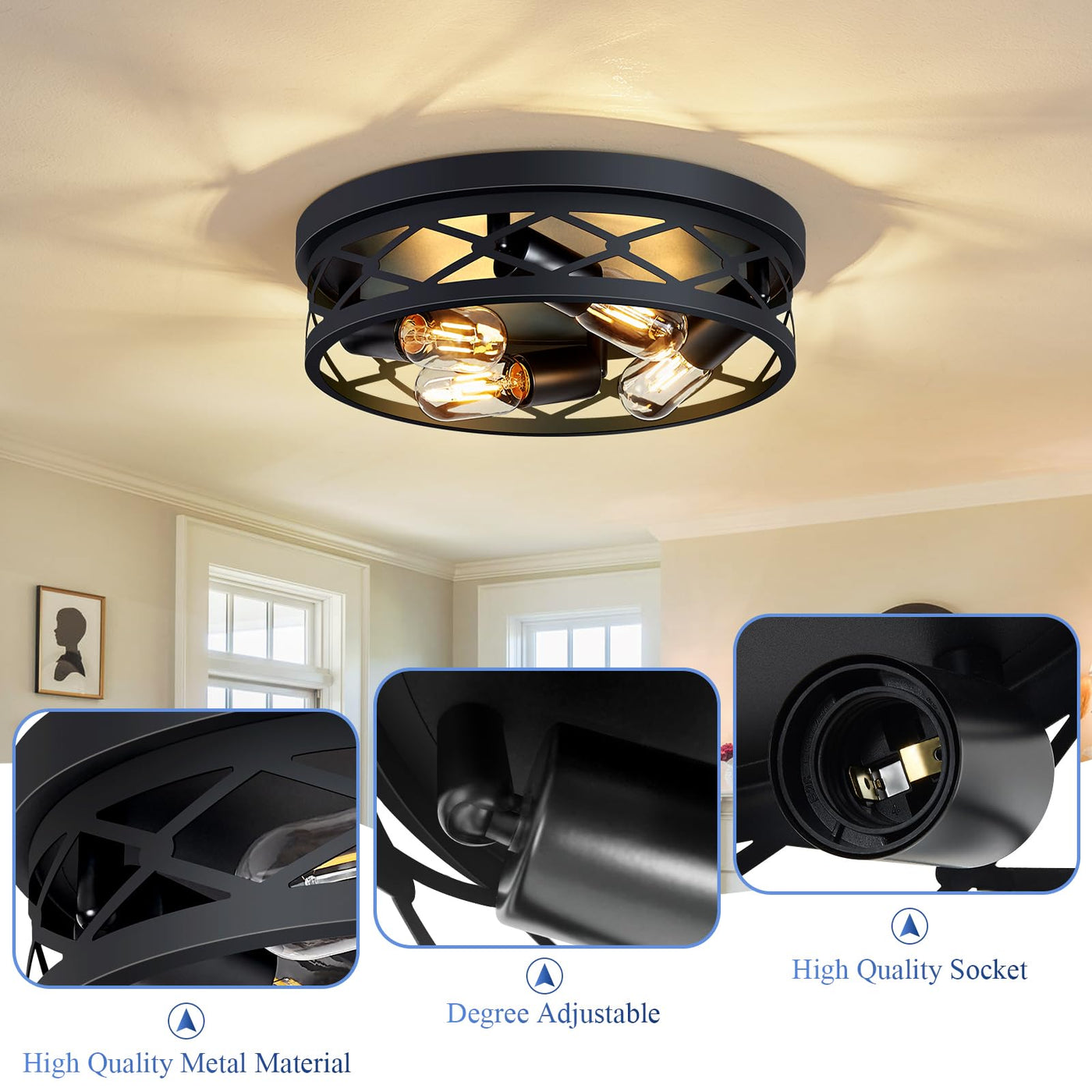 Xpehk 4-Light Farmhouse Ceiling Light Fixture,14 Inch Hallway Lighting Fixtures Ceiling,Light Fixtures Ceiling Mount For Kitchen