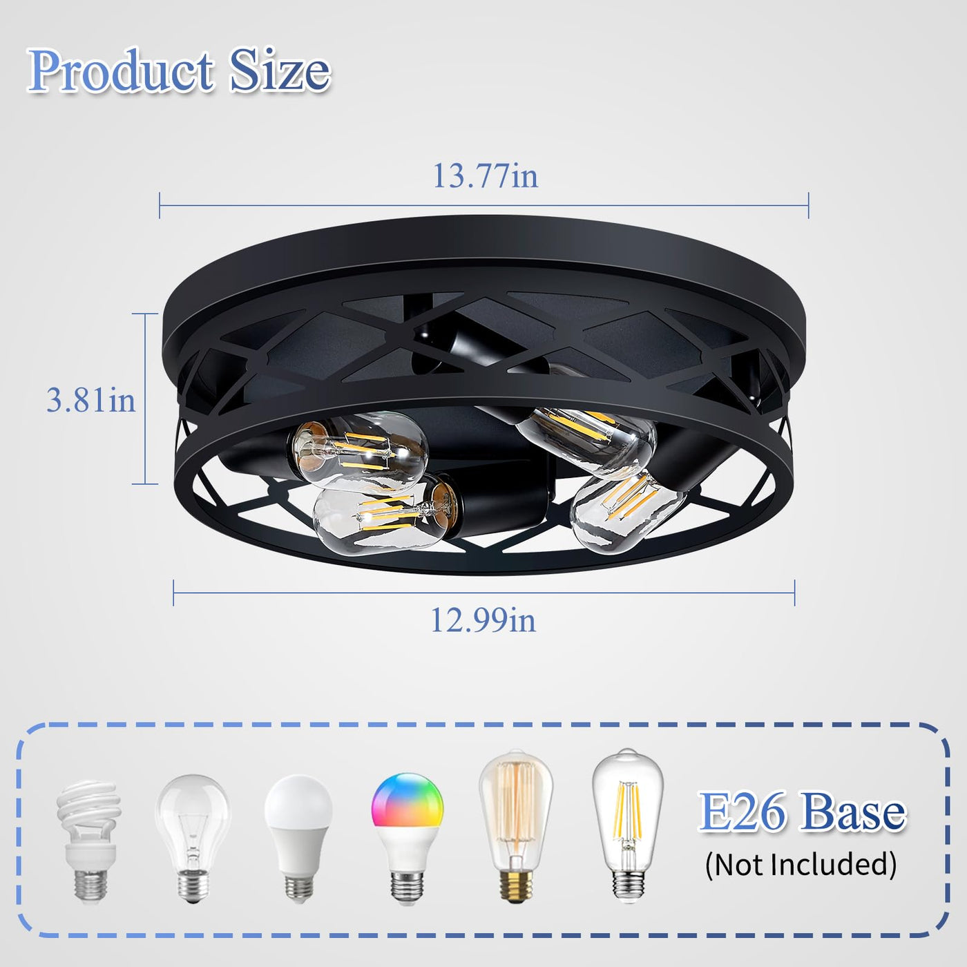 Q: What type of bulbs can I use with the XPEHK 4-Light Farmhouse Ceiling Light Fixture?A: The XPEHK 4-Light Farmhouse Ceiling Light Fixture is compatible with E26 medium base bulbs, including LED, incandescent, or CFL Edison bulbs. Please note that bulbs are not included with the fixture.