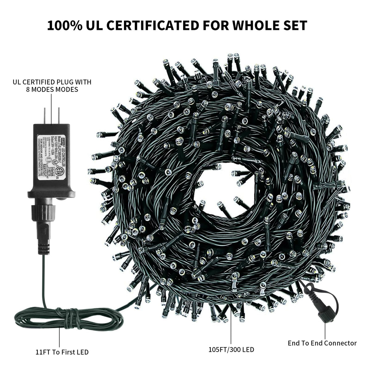 Xtf2015 Christmas String Lights 105Ft 300 Led Christmas Lights 8 Modes Memory Function & Timer- Ul Certified - Outdoor Indoor Christmas Fairy Lights For Tree Garden Party Wedding(Red + White)