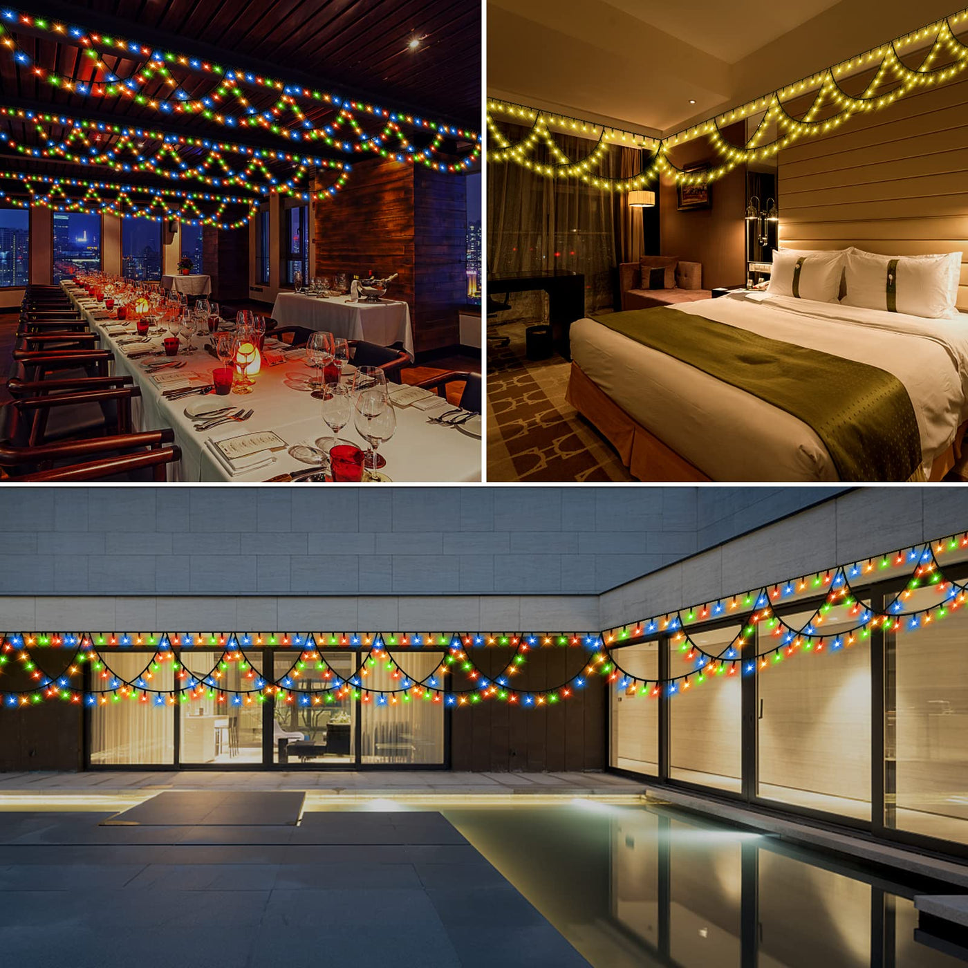 Color Changing Options: Switch between warm white, multicolor, or a combination of both to suit various occasions and themes.