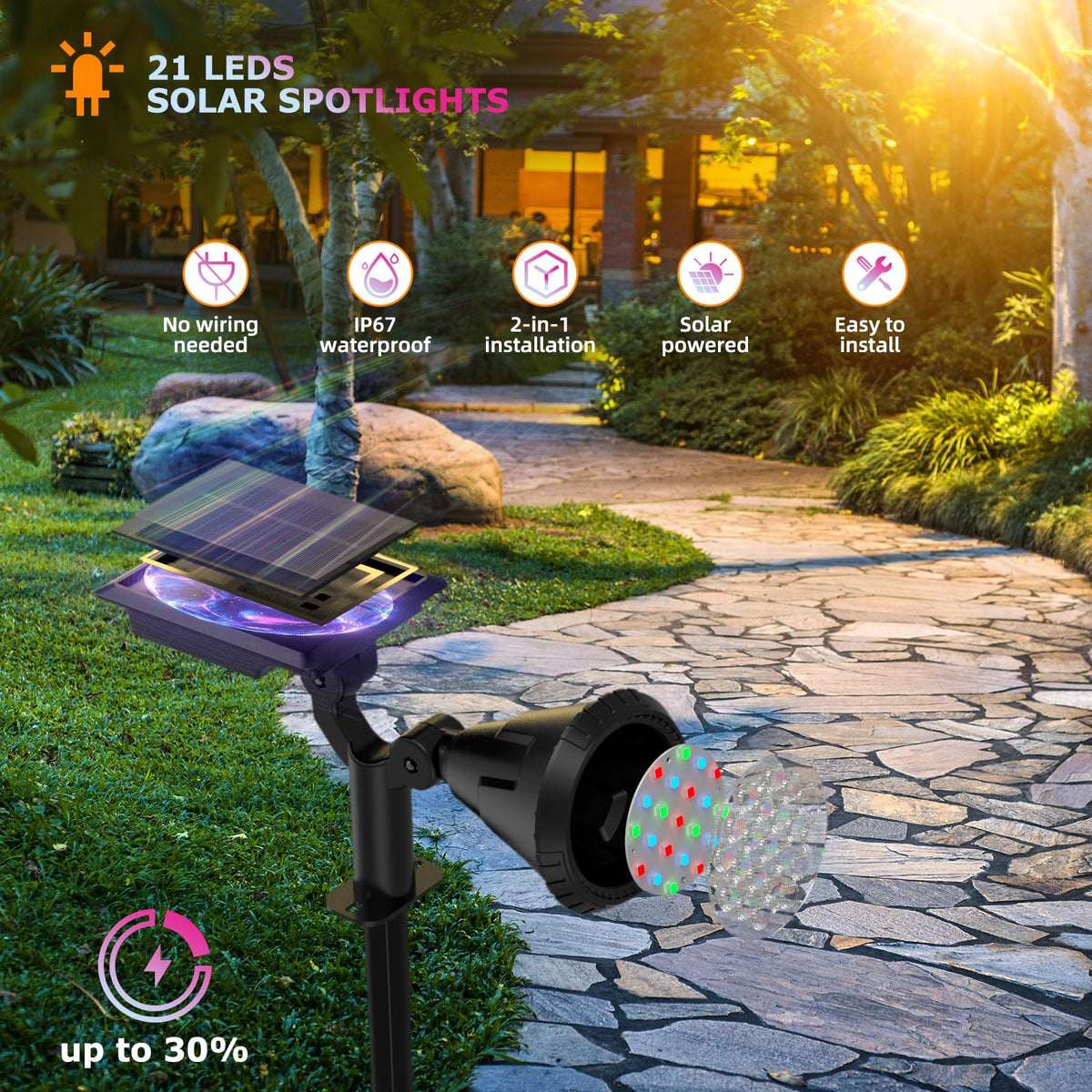 - **Energy-Efficient Solar Power**: Equipped with a built-in light sensor, these solar spotlights automatically charge during the day and illuminate your outdoor areas at dusk, eliminating the need for complex wiring or electricity.