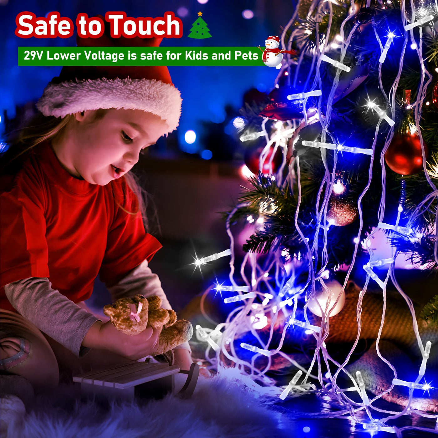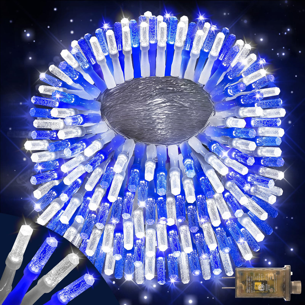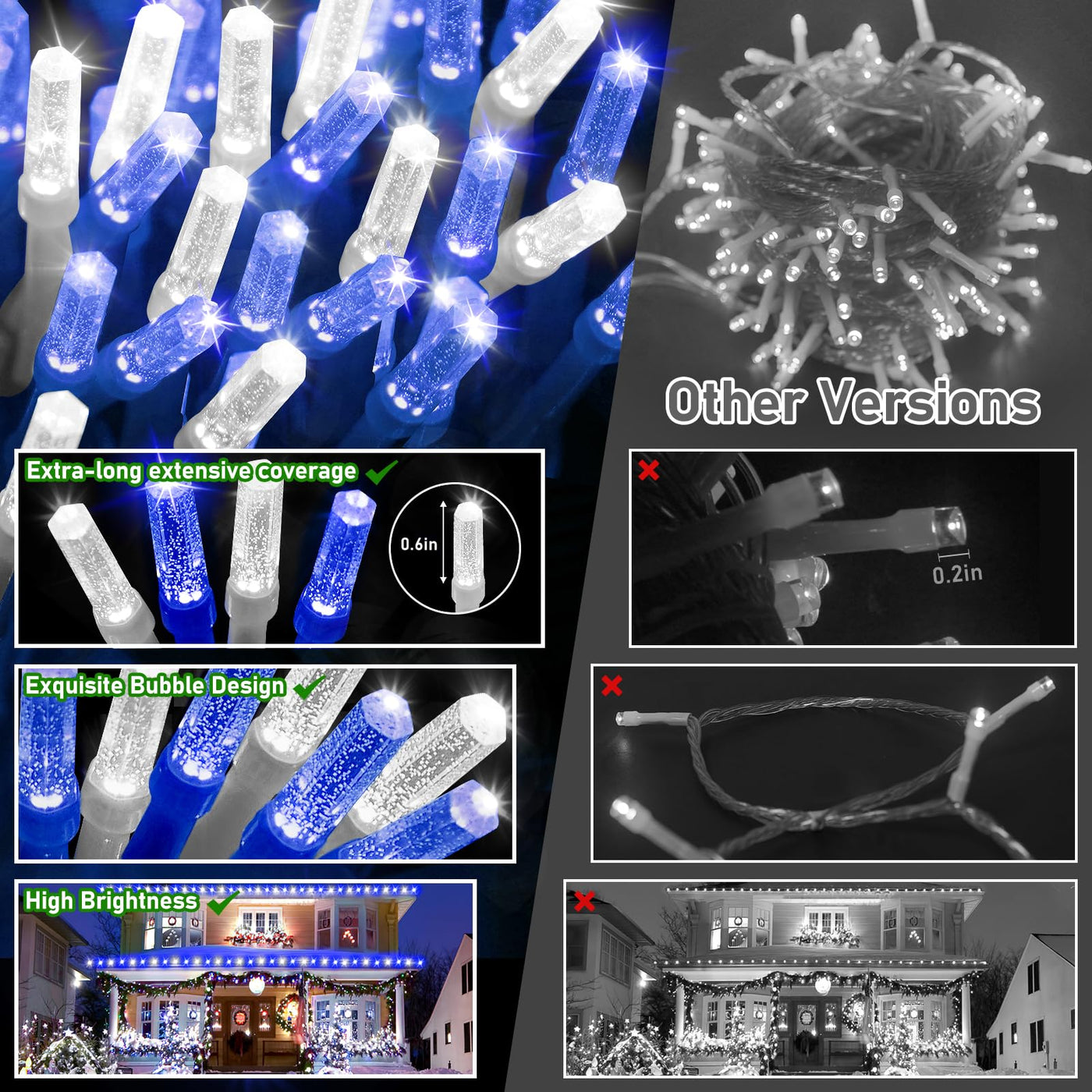 XURISEN 1000 LED Christmas Lights Outdoor, 403FT Blue and White String Lights with 8 Modes & Memory Timer, Model XUR-STG37