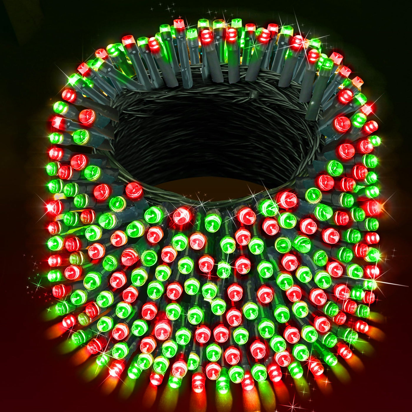 XURISEN 200FT Christmas Lights, 500 LED Twinkle Fairy Lights, 8 Modes, Green Wire, Red+Green, Model c1b36a1b-0959-