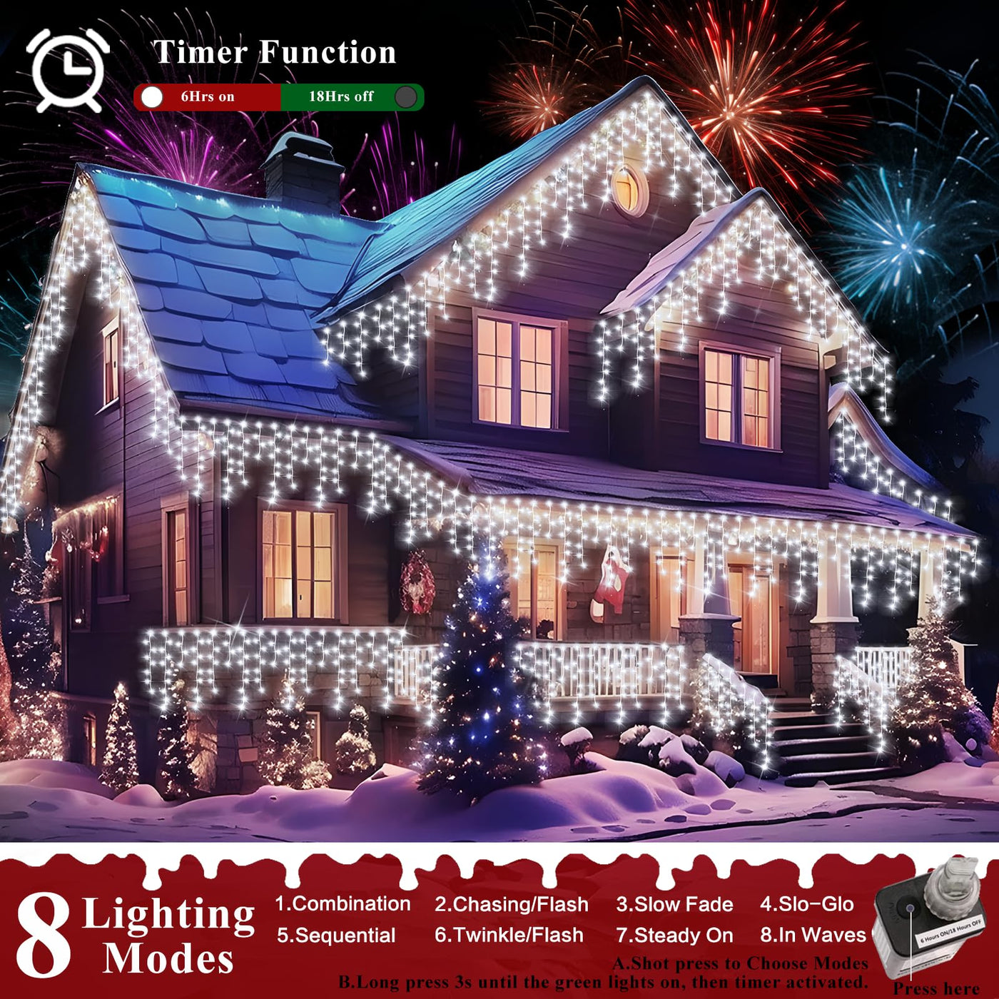 Enhance your holiday celebrations with the XURISEN 1280 Xmas Ice lights, designed for festive decoration. These cool white LED lights are perfect for creating a warm and inviting atmosphere during the Christmas season and other winter festivities.
