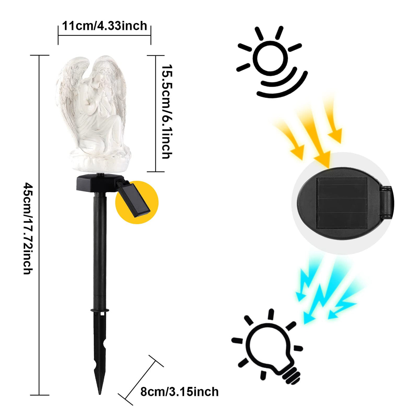 - **Charming Artwork**: Featuring a delightful angel design, this solar light emits a soft, pleasant light thanks to its warm LED bulbs. The lifelike details bring vitality to your garden, creating a welcoming and joyful atmosphere for all.