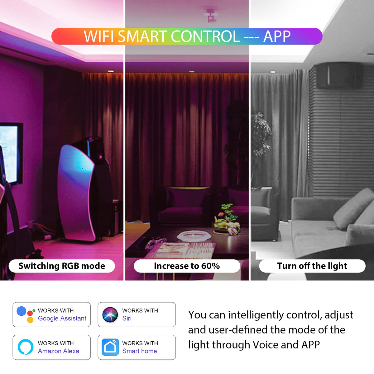 XXK WB5 RF WIFI Bluetooth LED Strip Controller RGB CCT RGBW 5in1 Dimmable Compatible with Smart Life APP / Alexa Echo / Google Assistant Home / Siri, DC12-24V Lights Controller ?5in1 LED Strip Control?WB5 controller supports to control RGB+CCT, RGBW, RGB, CCT, Single color LED strips. 5 output channel modes, easily switch the mode you need to define with one key. ?2.4G RF Remote Control?Our controller supports 2.4GHz RF remote control. In order to better carry out the linkage control between systems, we designed a full touch screen remote control - LM091 remote control (ASIN: ). This remote controls a distance of up to 99ft and ignores the walls. One remote can control multiple controllers. ?Voice Control?The controller is compatible with Amazon Alexa Echo/ Google Assistant Home / Siri. After the speaker device is connected to the controller, the lights can be controlled and adjusted with just one command. Fully intelligent, hands free! ?Smart APP Control?Use WIFI and Bluetooth to connect with the controller, and easily control and adjust the light through the smart life APP (support Android and iPhone). Bluetooth control does not require a network to work. Even if you are sailing in the ocean with no signal, you can control the RGB lights on your boat or yacht at will. ?Auto Sync & Transfer Function?Different controllers are activated at different times, controlled by the same remote control, and can work synchronously in the same dynamic mode and at the same speed. The two controllers automatically transmit signals within a distance of 99ft. As long as there is a controller within 99ft, the control distance can be wireless.