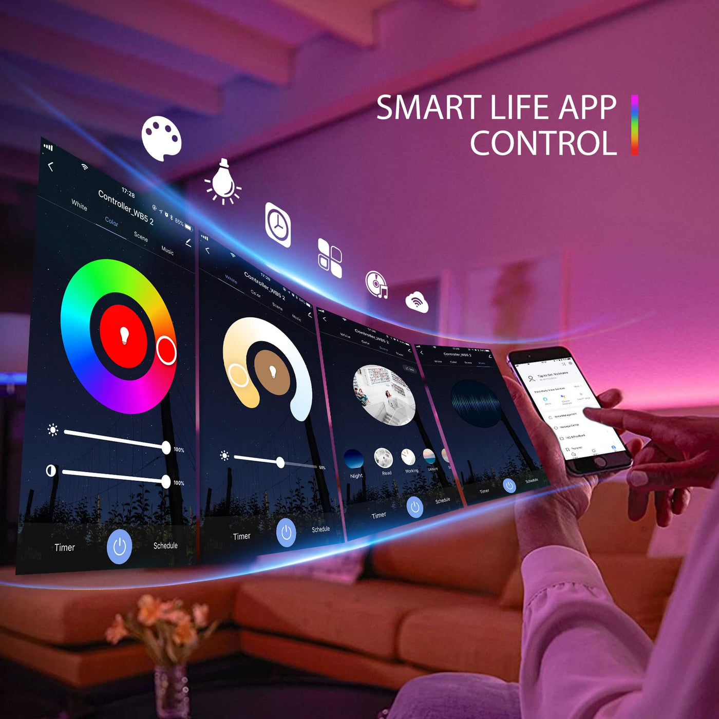 Q: Can I control the lights with my smartphone?A: Yes, you can control the lights using the Smart Life app on both Android and iPhone devices.