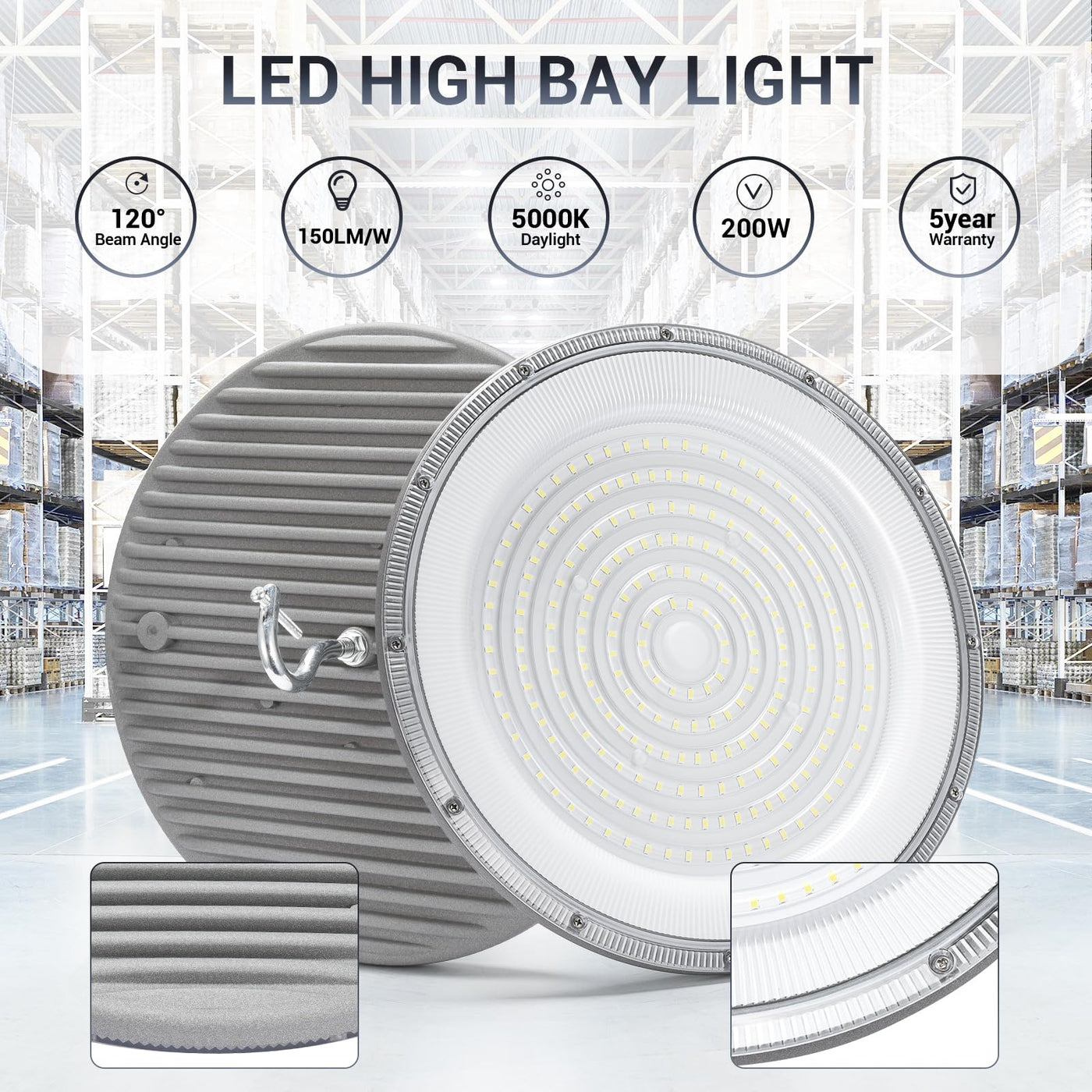 Xycn 10 Pack 200W Ufo Led High Bay Light,120Vac,5000K Daylight Commercial Bay Lighting,Ip66 Waterproof,30500Lm,850W Mh/Hps With