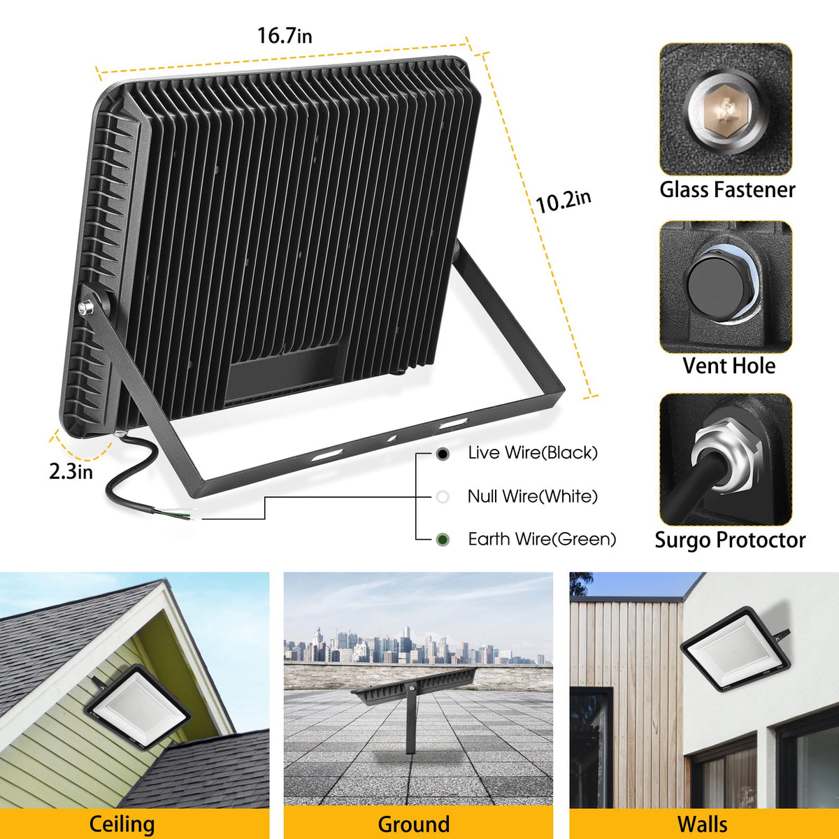 Super Bright & Energy Efficient: Equipped with 480 ultra-bright LEDs, these floodlights emit a stunning 50,000 lumens, making them a perfect replacement for traditional 2350W halogen bulbs. Save over 90% on energy costs.