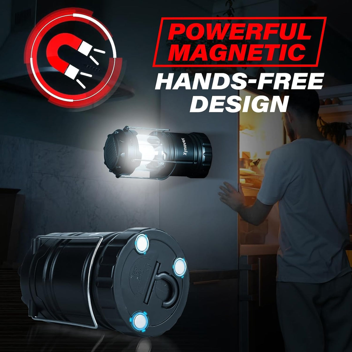 Xynover 4-Pack Solar Camping Lanterns - Rechargeable LED with USB/Solar/AA Battery | Magnetic Base & Hanging Hook | Collapsible,
