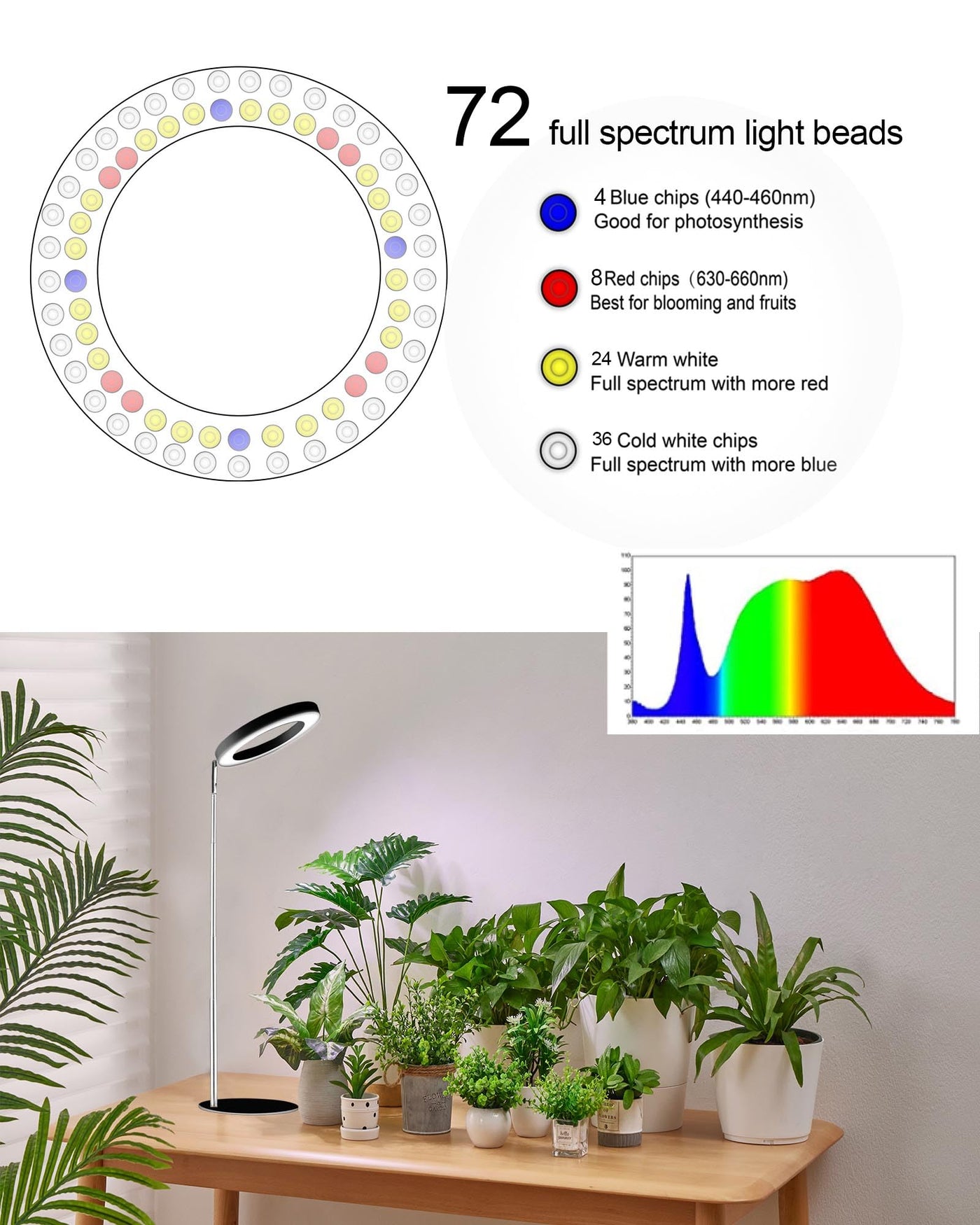 Yadoker Plant Grow Light For Indoor Plant,Desk Led Grow Light,Height Adjustable,Automatic Timer With 8/12/16 Hours,10-Level Brightness,Ideal For Small Plant Grow