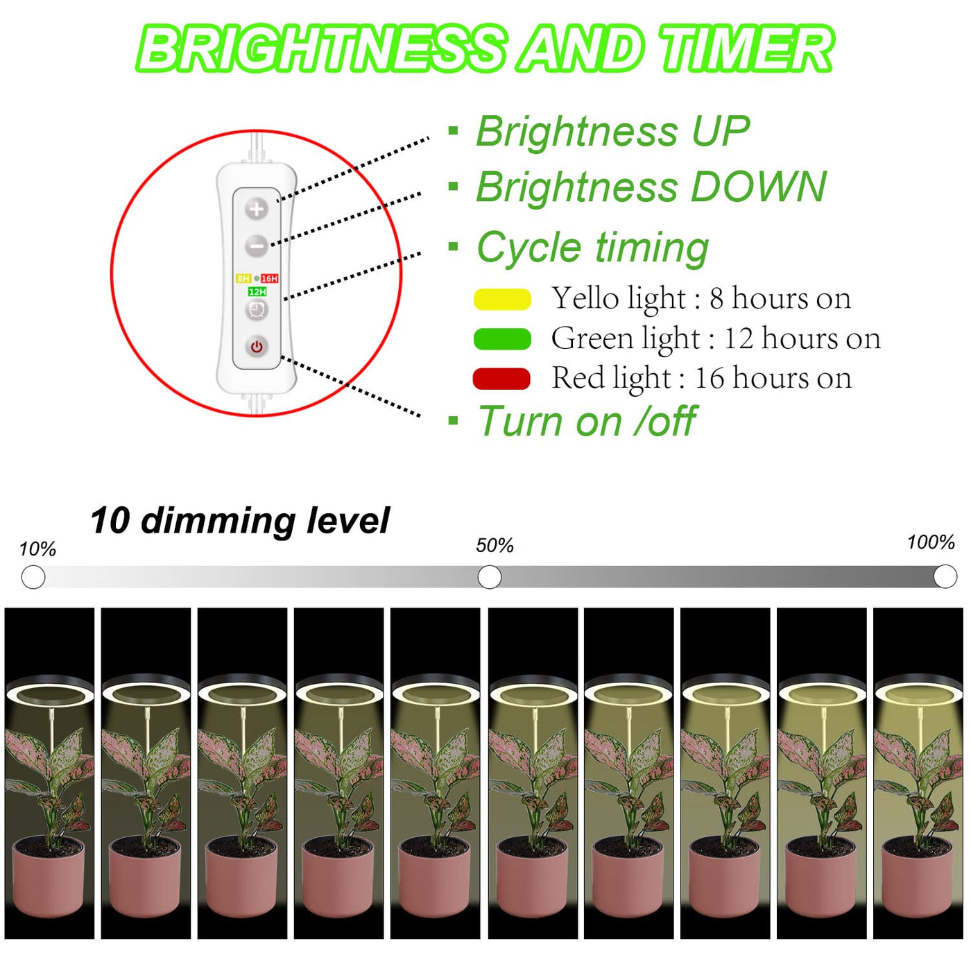 Yadoker Plant Grow Light, Led Growing Light Full Spectrum For Indoor Plants,Height Adjustable, Automatic Timer, 5V Low Safe Volt