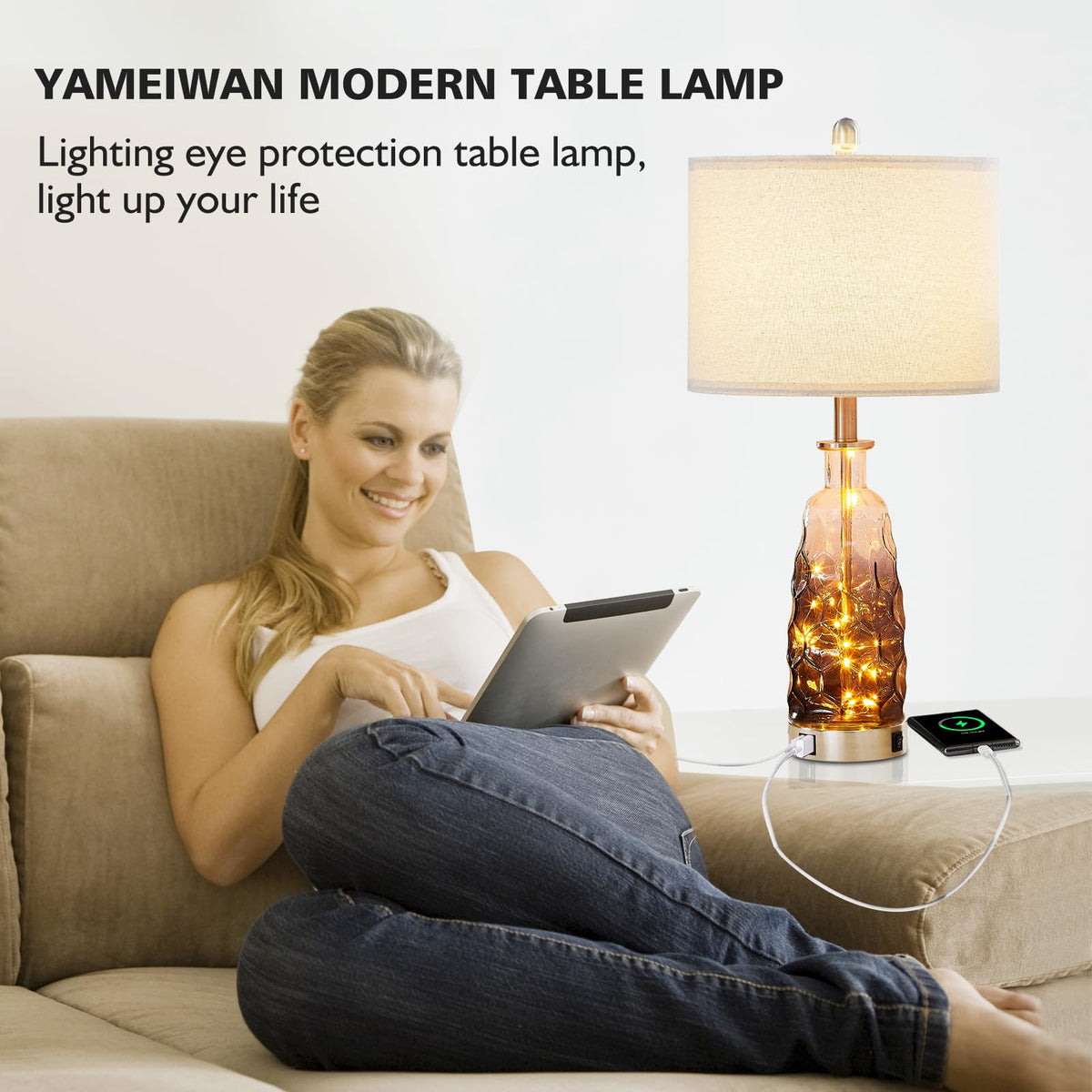 YAMEIWAN living room rustic table lamp, the lamp body is made of resin material, classic retro style, table lamp for living room assembly height 25 suitable for placement in the living room bedroom, is the perfect home decoration. bedside lamps with touch control, with 3way dimming, according to the preferred brightness at will to switch high school low three brightness, perfectly adapted to any environment. Sensitive touch control function without fumbling in the dark, more convenient. touch lamp with usb and typ-c two different charging ports for different electronic devices to provide a more convenient way to charge, whether you are on or off the lamp, usb can keep independent charging. The nightstand lamp comes with 2 lampshades and 9w energy saving bulbs, the lampshade is made of linen material with a diameter of 13 inches, the metal inner buckle inside the lampshade is strong and durable and easy to assemble, the hook and loop fit is very concealed and does not affect the aesthetics, the 9w dimmable energy saving bulbs save half of the energy, soft and not harsh and flickering, lamps for bedrooms use e26 lamp holders, you can Replace any bulb of e26 type. bedside lamps set of 2 main components have been assembled, only need to be packaged in the lamp frame lampshade assembly can be completed, our design concept is to get inspiration from each persons sense of experience, if you have any questions, welcome to give us a message we will be the first time to deal with improvements.