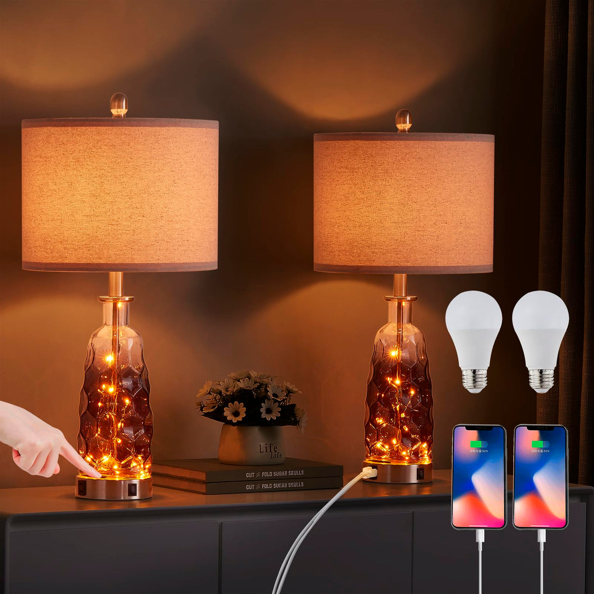 YAMEIWAN 28.7 Farmhouse Vintage Table Lamp Set of 2 with Daul USB Charging Ports QC3.0, 3-Way Dimmable Touch Lamp for Living Roo