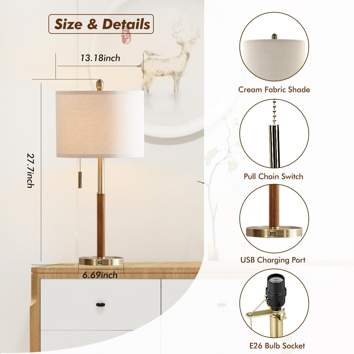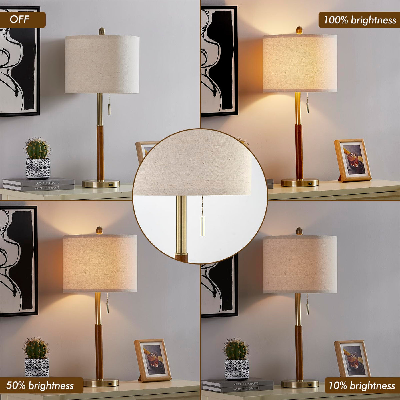 Dimmable Table Lamps For A Wonderful Home Experiencewhether Your Decor Is Art Deco, Mid-Century Modern Or Contemporary. With A Neutral Linen Shade And Gold Base, Our Table Lamp Is Sure To Add A Touch Of Elegance To Your Living Room, Bedroom Or Office.Conveniently Charge Your Electronic Devicesour Table Lamp Has A Built-In 5V/2.1A Usb Charging Port That Allows You To Charge Your Cell Phone And Other Electronic Devices Without The Need For A Charger, Adding More Convenience To Your Life.3-Way Touch Dimming Controlsimply Pull The Zipper To Dim The Light As Needed.It Offers 3 Different Brightness Options (Low, Medium And High).Low Brightness (10% Brightness) - For Bedside Lamps Or Nurseries.Medium Brightness (70% Brightness) - For Everyday Lighting, Romantic Dining.High Brightness (100% Brightness) - For Reading, Working Or Playing Electronics.