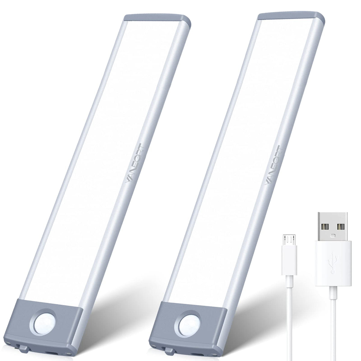 Yanegrt 2 Pack Motion Sensor Cabinet Lights, Rechargeable Under Cabinet Light Wireless, 30 Led Magnetic Self-Adhesive Closet Nig