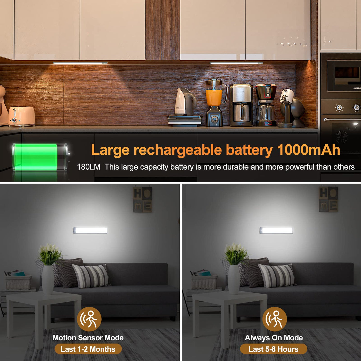 Our New 30 Led Intelligent Side Illuminated Motion Sensor Light Refracts From The Side, Through The Light Guide Plate And Diffusion Plate To Reduce The Strong Light And Stroboscopic Light Of Direct Light Products, So As To Bring Uniform Bright And Soft Diffuse Light. Compared With Other Direct Light Sensor Light, 30 Led Lights Are Soft And Balanced, With Minimal Glare, Visual Comfort And Reduced Visual Fatigue. With A Length Of 7.8 Inches, It Can Provide Perfect Night Lighting For Your Family Life. ? No Aaa Batteries Needed. This Rechargeable Cabinet Lights Has A Built-In 1000Mah Lithium Battery, Which Can Be Fully Charged Through Usb Port Within 3 Hours (Usb Cable Provided), 4-5 Hours For Always On Mode. ? Easy To Operate With Three Modes: On-Off-G (Motion Activated), Motion Sensing Light Is Perfect For Closet Or Other Dark Spaces In The House. At Night, You Do Not Need To Worry About Turning On Main Lights In The Room With The Integrated Power Saving Function: When It Detects Your Movement(Within 16 Ft), The Light Will Be On And It Will Go Out Automatically After Leaving The Range For About 20 Seconds. ? This Home Life Under Lights Is Equipped With 30 Bright Energy-Saving Leds. Led Light Life: > 80,000 Hours. Light Color: The 7000K Cold Light Source Gives People A Sense Of Visual Coolness. ? The Rechargeable Motion Light Can Be Directly Attached Onto Metal Surfaces With The Powerful Built-In Magnet Inside The Back, Or Be Easily Attached Onto Any Surface By Using Double-Sided Tape And Iron Bar Provided. No Drilling Or Screwing Needed, Just Simply Stick The Iron Bar Onto The Surface Using Double-Sided Tape, And Attach The Light On The Bar. Product Parts: 2 X Led Motion Sensor Lights 2X Iron Sheet 1 X Usb Cable 2 X Adhesive Tape 1 X User Manual