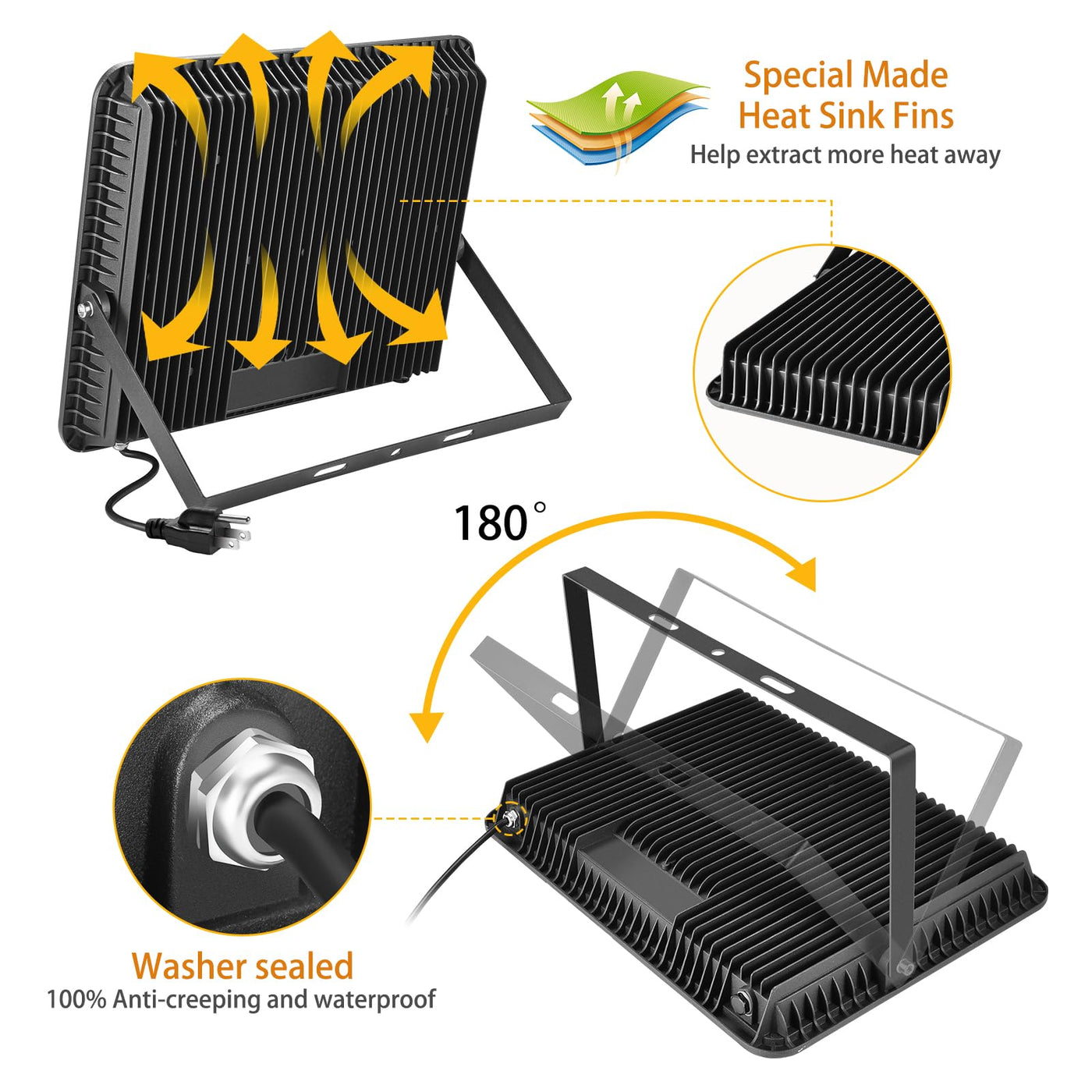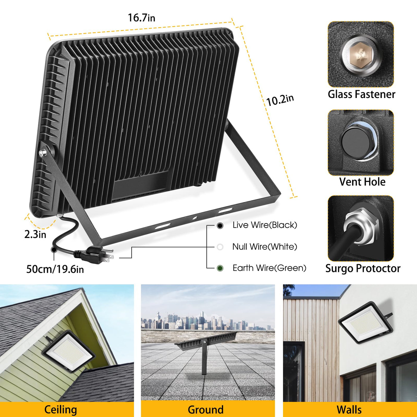 Yanycn Excellent Led Lights For Customers Led Flood Light 300W Led Flood Lights Before Leaving The Factory, Carry Out Four Waterproof Inspection Processes And 100% Inspection To Ensure Excellent Waterproof Effect And Reduce The Maintenance Cost Of Customers. Led Flood Lights Adopts High-Quality Lamp Beads, Strictly Controls The Procurement Quality, And The Light Attenuation Is Less Than 2% Per Year, Which Greatly Prolongs The Use Span Life Of Commercial Flood Lights. Bright And Comfortable Led Flood Lights Stadium Lights Led Commercial Led Flood Lights Independent Optical Grade Lens, Accurate Light Distribution, Effective Suppression Of Glare And Scattered Light. High Purity Aluminum Integrated Heat Dissipation, Fast Heat Conduction And Excellent Heat Dissipation Performance. The Safety And High Light Transmittance Tempered Glass With Unique Design Is Adopted Die Cast Aluminum, Scratch Resistant And Fade Resistant. Efficient Cooling Structure:Special Appearance Of Anti-Static And Anti-Corrosion. It'S Worth It. Specifications Wattage: 300W Led Type: 360Pcs Leds 3030 Efficiency: 140Lm/M Power Factor:0.95 Cri: ≫85Ra Input Voltage: Ac85-277V Ip Rating: Ip66 Lifetime(L70 Standard): ≫50,000 Hours Lumens: 43500Lm Color Temperature: 3000K Warm White Material: Aluminum +Pc Cable Length: 60 In Led Chip And Save Energy Features Durable Die-Casting Aluminum Structure With Excellent Heat Dissipation For High Conductivity And Stable Performance. Ip66 Waterproof For Wet Locations Or Bad Weather.&Nbsp; &Nbsp;Resists Rust, Corrosion, Cracking.&Nbsp; &Nbsp;Outstanding Corrosion Protection. Outstanding Thermal Solution Suit For Usage In Commercial Application And Provide Wide Angle Brightness Control. Save Energy And Money.&Nbsp; &Nbsp;Energy-Efficient Led Technology Lowers Energy Usage.&Nbsp; &Nbsp;Emits Over 43500Lm For Led Area Light. Instant-On.&Nbsp; &Nbsp;50,000Hrs Lifespan.&Nbsp; &Nbsp;No Flicker.&Nbsp; &Nbsp;Environment Protection Without Uv Or Ir Radiation. Widely Application.&Nbsp; &Nbsp;Stadiums, Sport Courts, Parking Lots, Bridge, Building Exterior Wall, Squares, Billboards Rural Areas, Gardens, Dark Backyards, Warehouse, Street, Security Areas Specifications Of Led Court Light