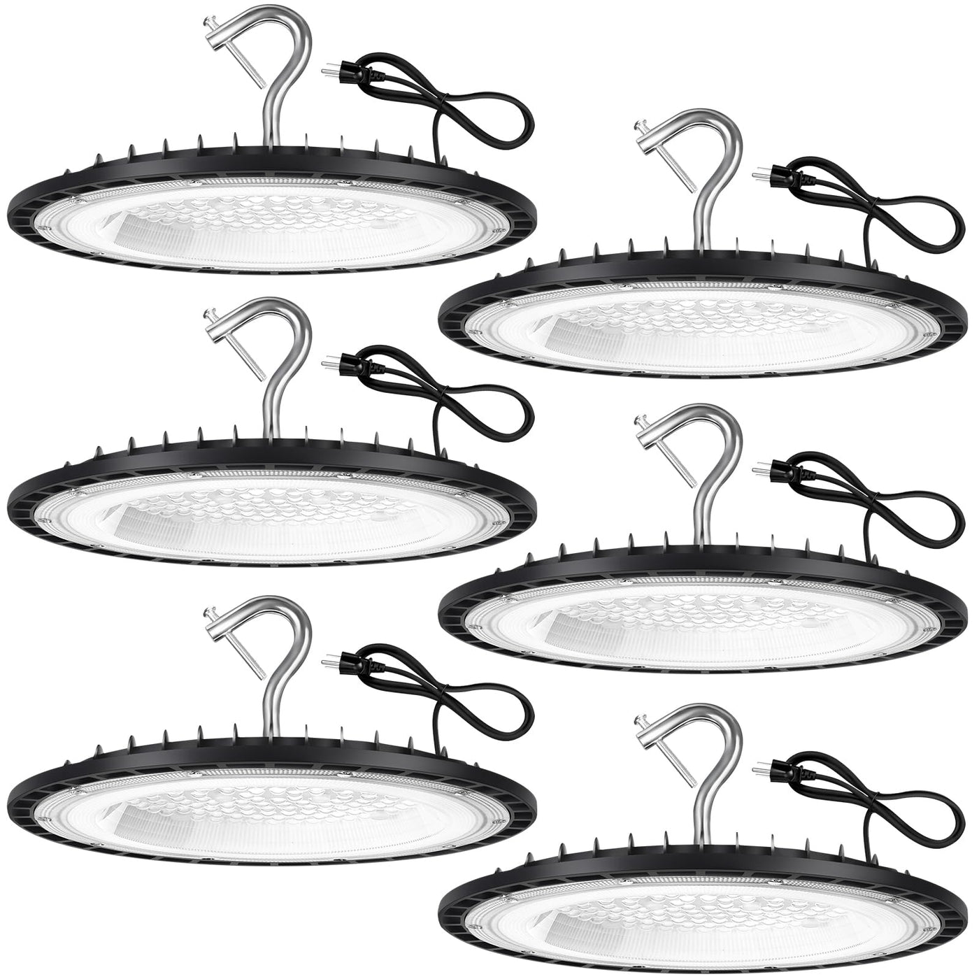 Yanycn 6 Pack 100W Ufo Led High Bay Light Fixture,5000K Daylight Commercial Shop Bay Lighting,120V,15000Lm,[450W Mh/Hps Equiv.]
