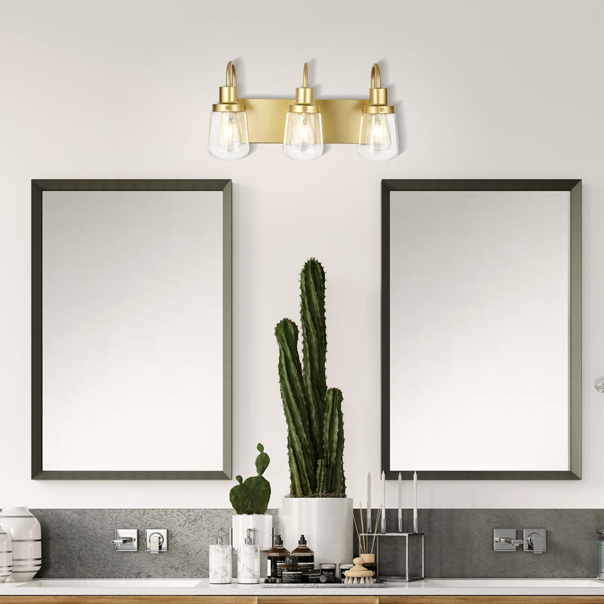 Yaohong Industrial Wall Sconce 3-Lights Modern Vanity/Bathroom Lamp In Painted Gold With Clear Glass Shades Wall Mount Light Fixtures For Hallway Kitchen Living Room