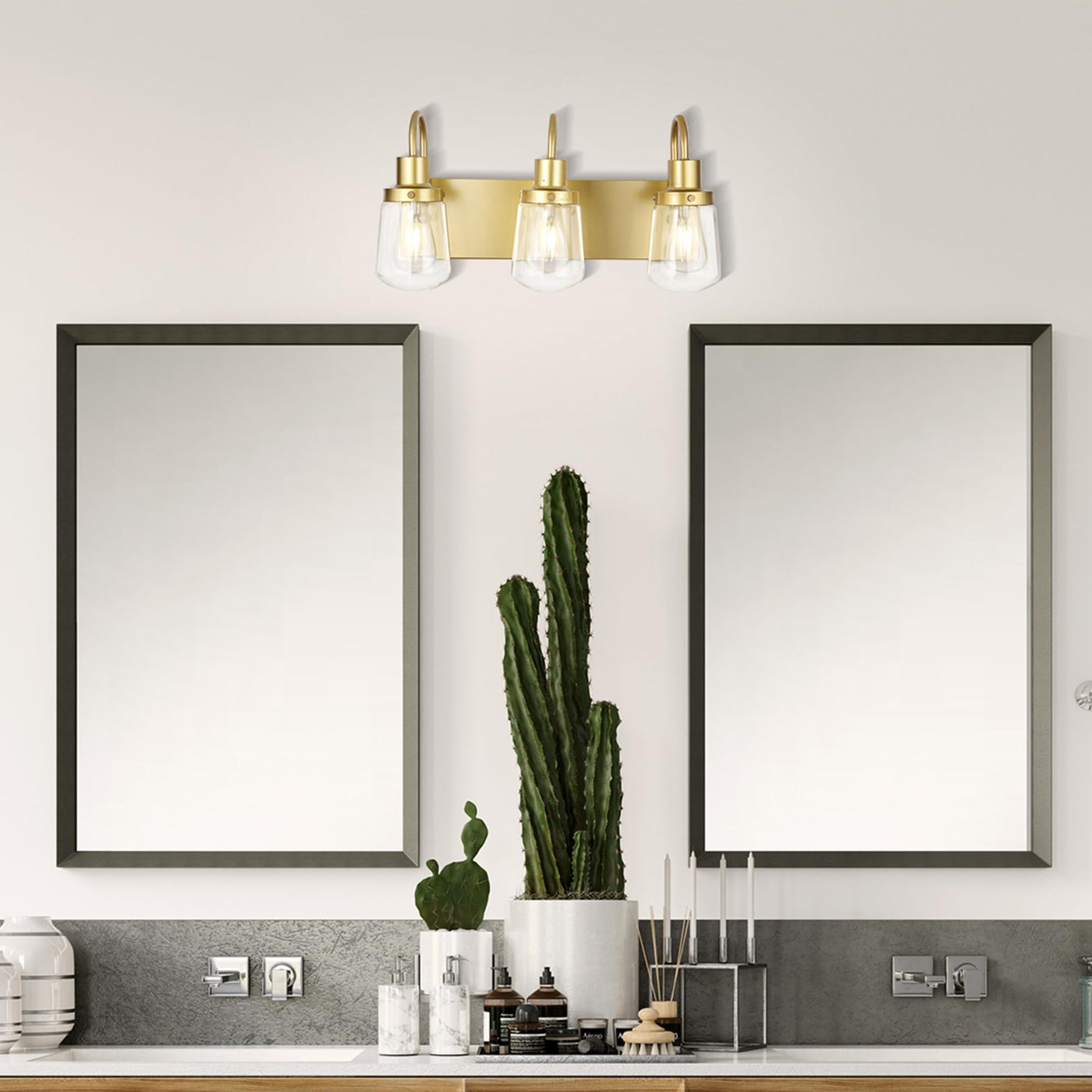 Attractive and refined, the YAOHONG 3-light bathroom vanity light fits in a variety of interior styles and decors ranging from rustic/farmhouse to industrial and much more. It features a stunning brushed brass finish and standout clear glass shade to spruce up your home. Included all mounting hardware ,this bathroom vanity light fixture can be mounted in an up or down direction quickly and easily. So make your purchase today to begin your journey to a whole new lighting experience!