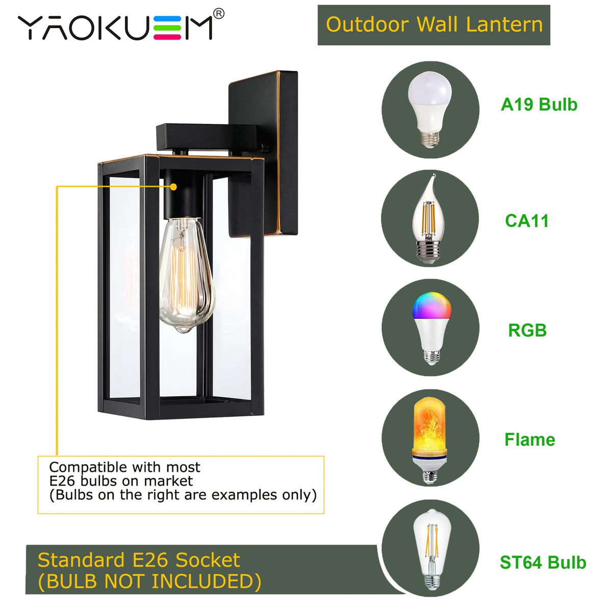YaoKuem Outdoor Wall Lantern, Wall Sconce as Porch Lighting Fixture, E26 Medium Base, Metal Housing Plus Glass, Bulbs not Included