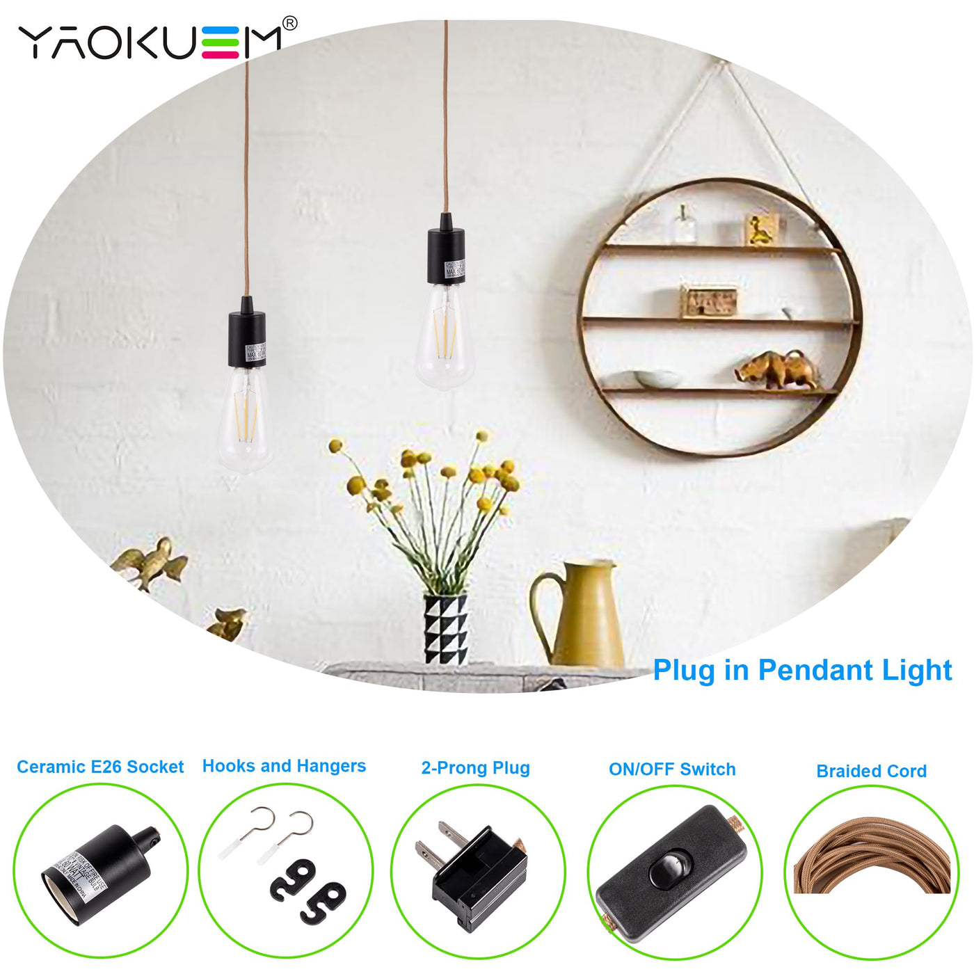 Yaokuem Pendant Lighting, Plug In Hanging Light Kits With On/Off Switch, 15 Feet Cord Kit, Bulb Not Included, Bronze, 3 Pack