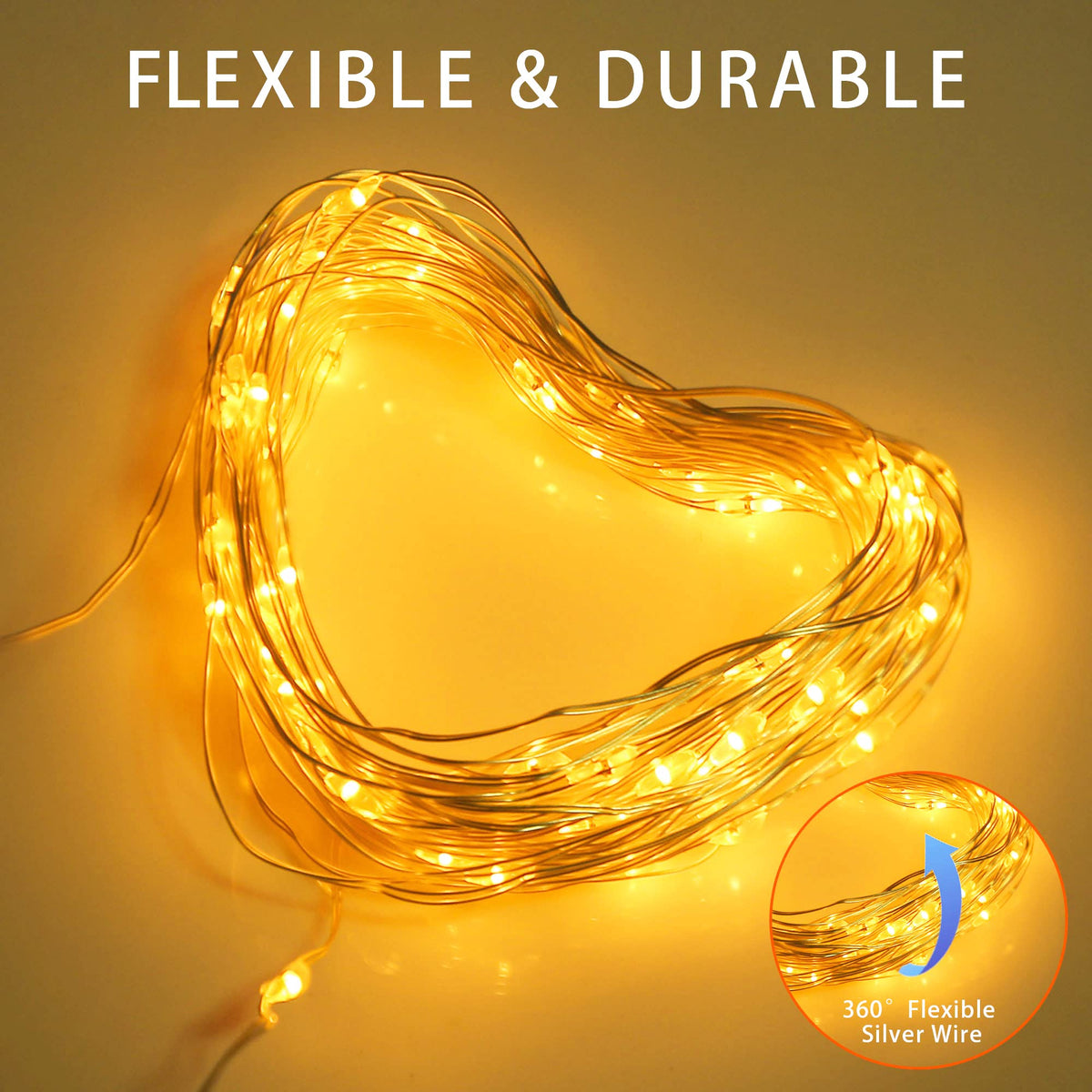 Q: What are the lighting modes available for these solar string lights?A: These solar string lights feature 8 different lighting modes, including steady on and various flashing patterns, allowing you to customize the ambiance for any occasion.