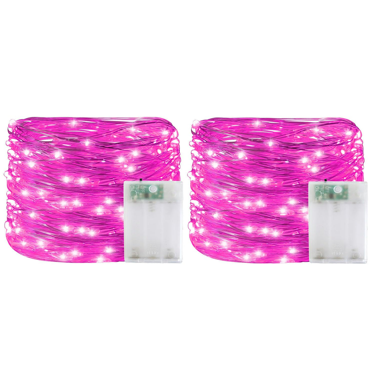Yaozhou Valentines Day Pink Decorations Fairy String Lights, Battery Operated With Timer, 2 Pack 33Ft 100 Led Mini Battery Powered Lights, Mason Jar Waterproof Firefly Christmas Lights Diy Party